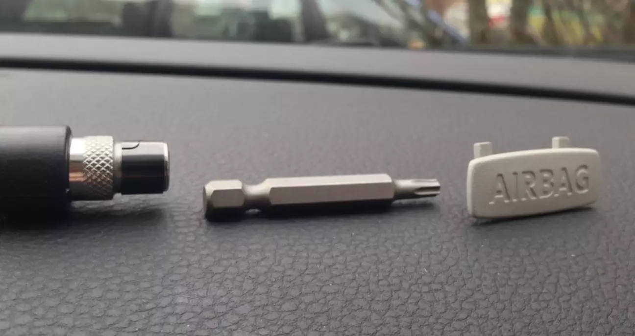 Для початку знімаємо пластик стійки. Миємо ретельно руки, щоб на тканині не залишились сліди. Лопаткою під діваємо заглушку airbag і знімаємо її:
