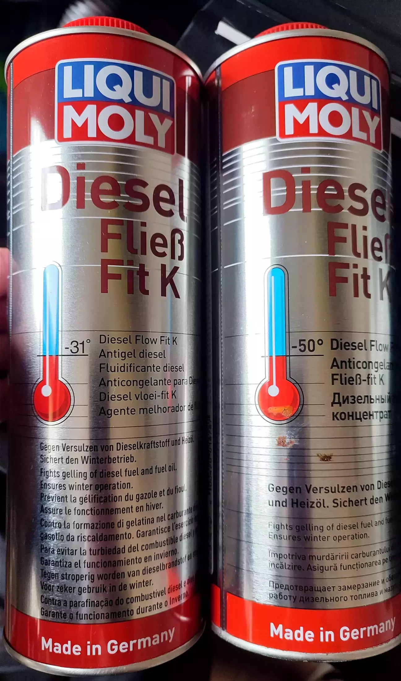 3) Diesel Fließ Fit K 1л. - Дизельний антигель-концентрат. Запобігає кристалізації парафіну в дизельному паливі при низьких температурах, що забезпечує його фільтрованість і захищає від засмічення фільтрів та паливопроводів.