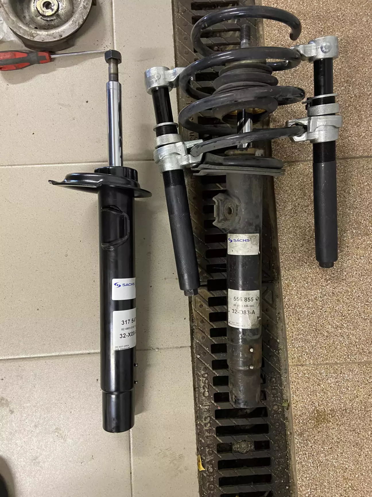 После установки дисков стало понятно, что висота машины меня совсем не устраивает особенно спереди, между передним колесом и аркой пролазил кулак. Сначала думал найти какие-то передние пружины с занижением и на этом остановиться, нашёл Б/У прижины -35мм, но как обычно нормально не разобрался с вопросом перед покупкой и не знал что у е46 очень много вариаций передних пружин: