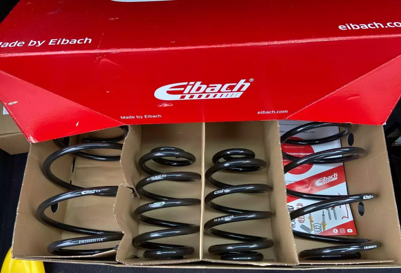 Мне достались пружины с дизеля 4 цилиндра, на них машина бы почти не занизилась и еще бы стала жесткой, их я продал и стал искать именно под свой двигатель, но на 4 цилиндра бенз популярностью они не пользуються к сожалению. В итоге пришёл к тому, что закажу новый комплект Eibach Pro-Kit, их плюс в том, что они совместимы с обычными амортизаторами так как занижение до -35мм не требует укороченного штока. Пару недель ожидания под заказ и они у меня.