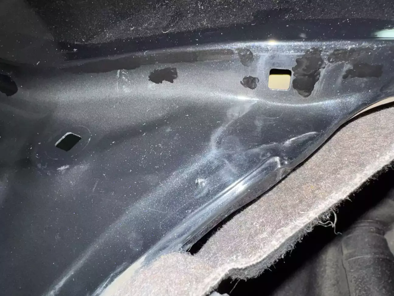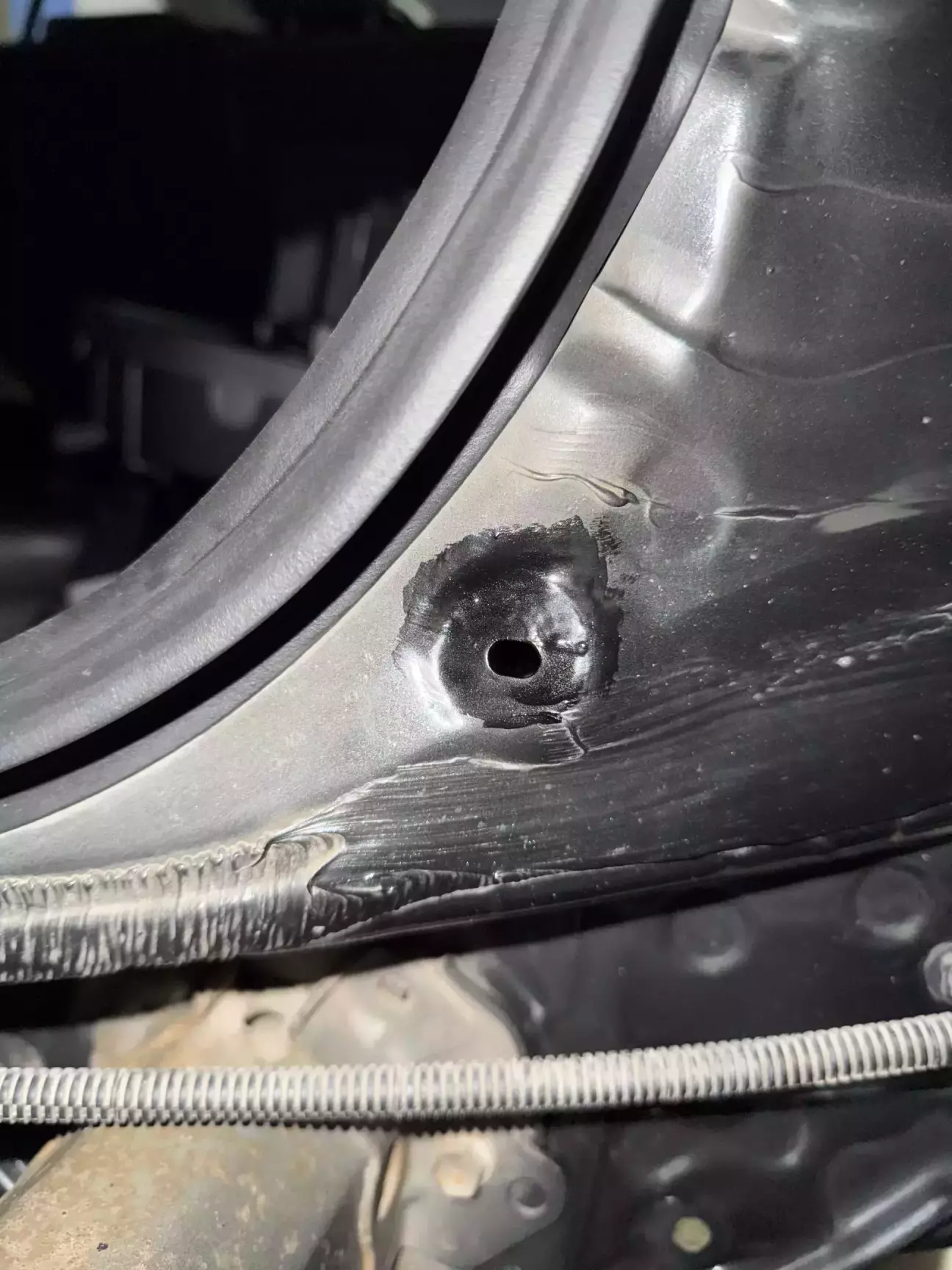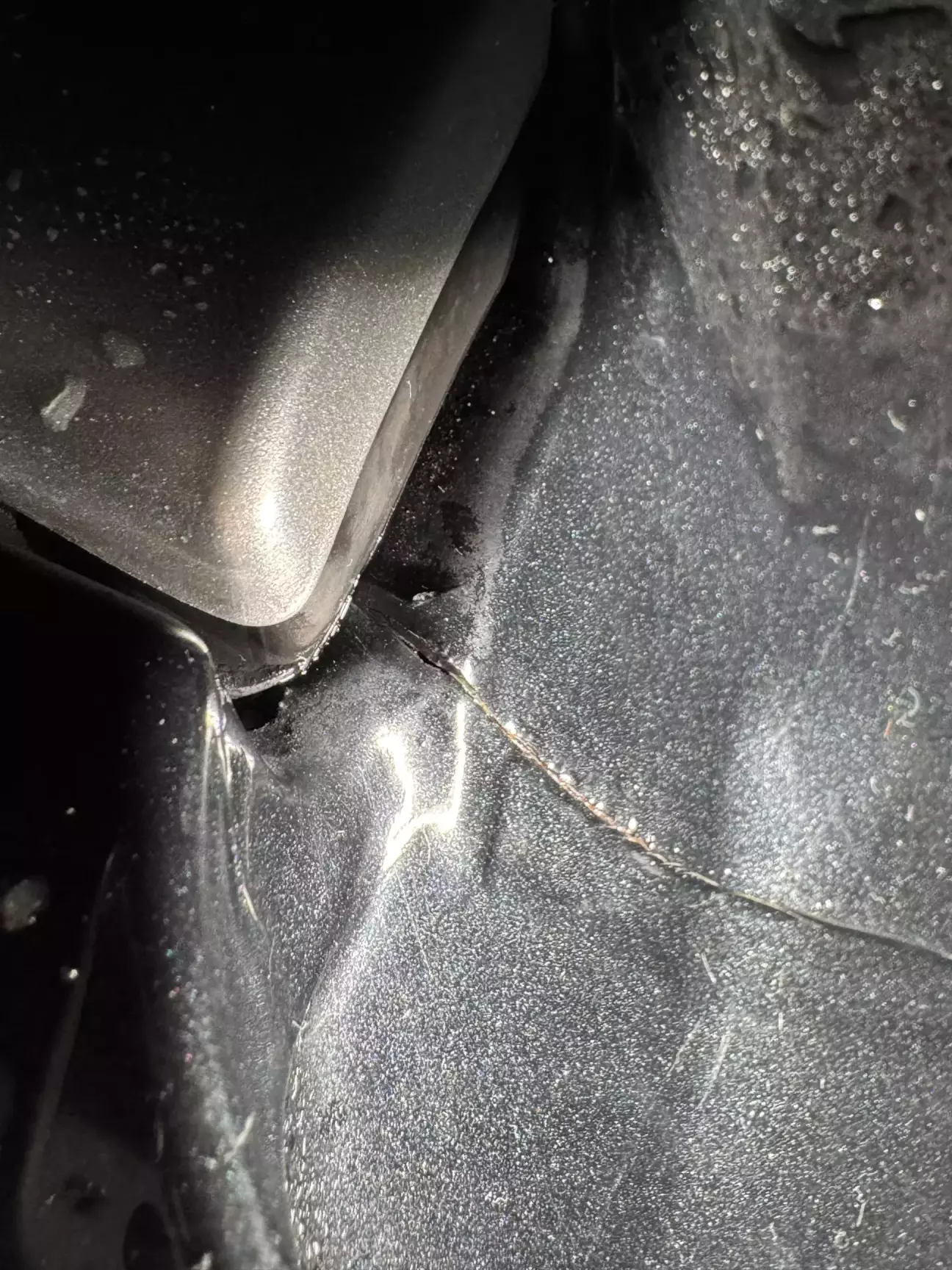 Через кілька днів після чергового осіннього дощу цікавість знову взяла своє. Взяв ліхтарик і почав сканувати весь зад кузова у верхній частині, низу дивитись не було сенсу, він загерметизований як підводний човен) Минуло буквально кілька хвилин , і я не повірив своїм очам. Оууу, єс!)) Знайшов. Малесенька дірочка розміром із волосину в шовному герметику на куті, де стикується дах і панель задньої ляди.