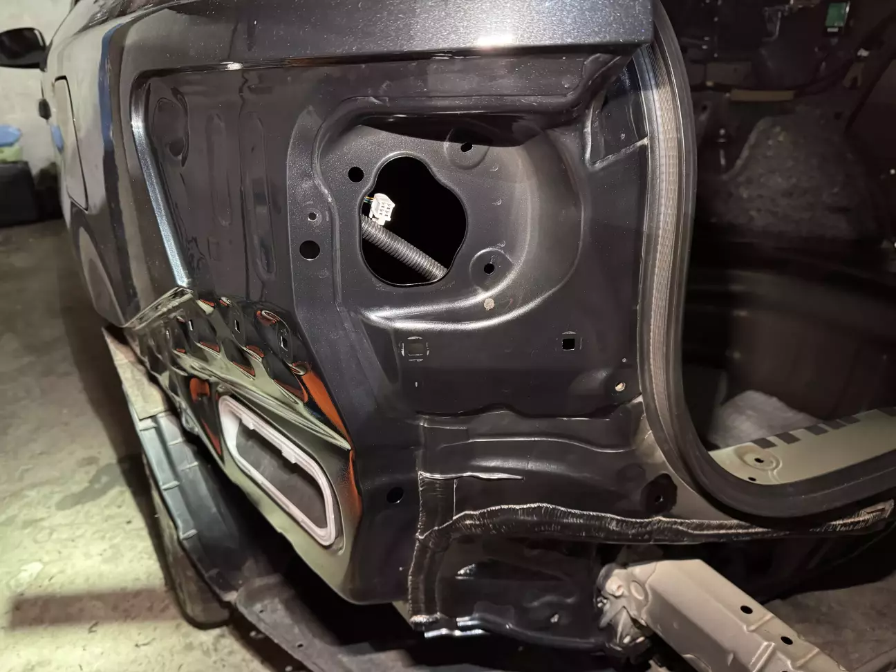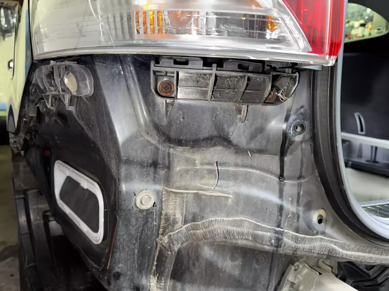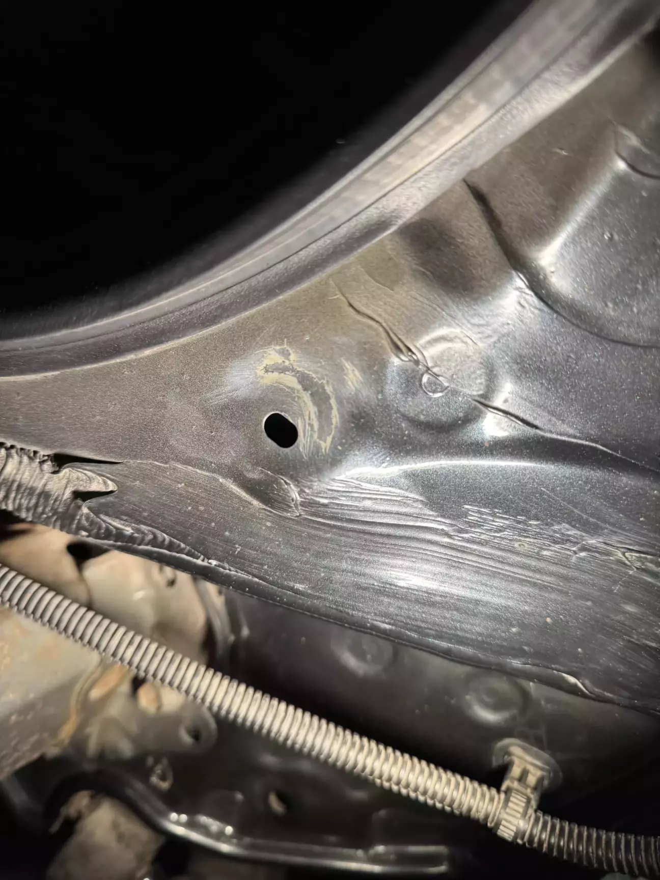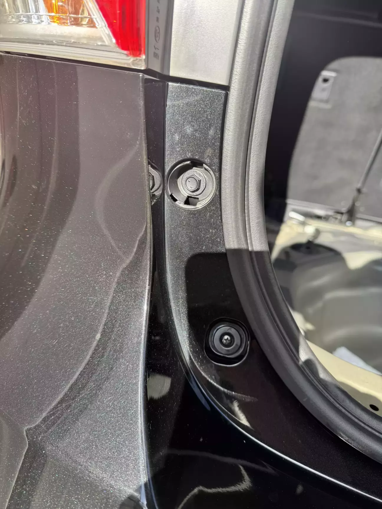 Через кілька днів після чергового осіннього дощу цікавість знову взяла своє. Взяв ліхтарик і почав сканувати весь зад кузова у верхній частині, низу дивитись не було сенсу, він загерметизований як підводний човен) Минуло буквально кілька хвилин , і я не повірив своїм очам. Оууу, єс!)) Знайшов. Малесенька дірочка розміром із волосину в шовному герметику на куті, де стикується дах і панель задньої ляди.