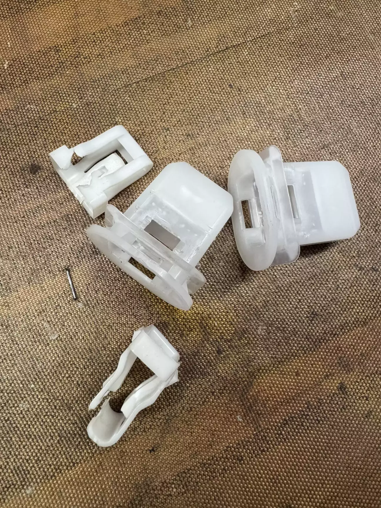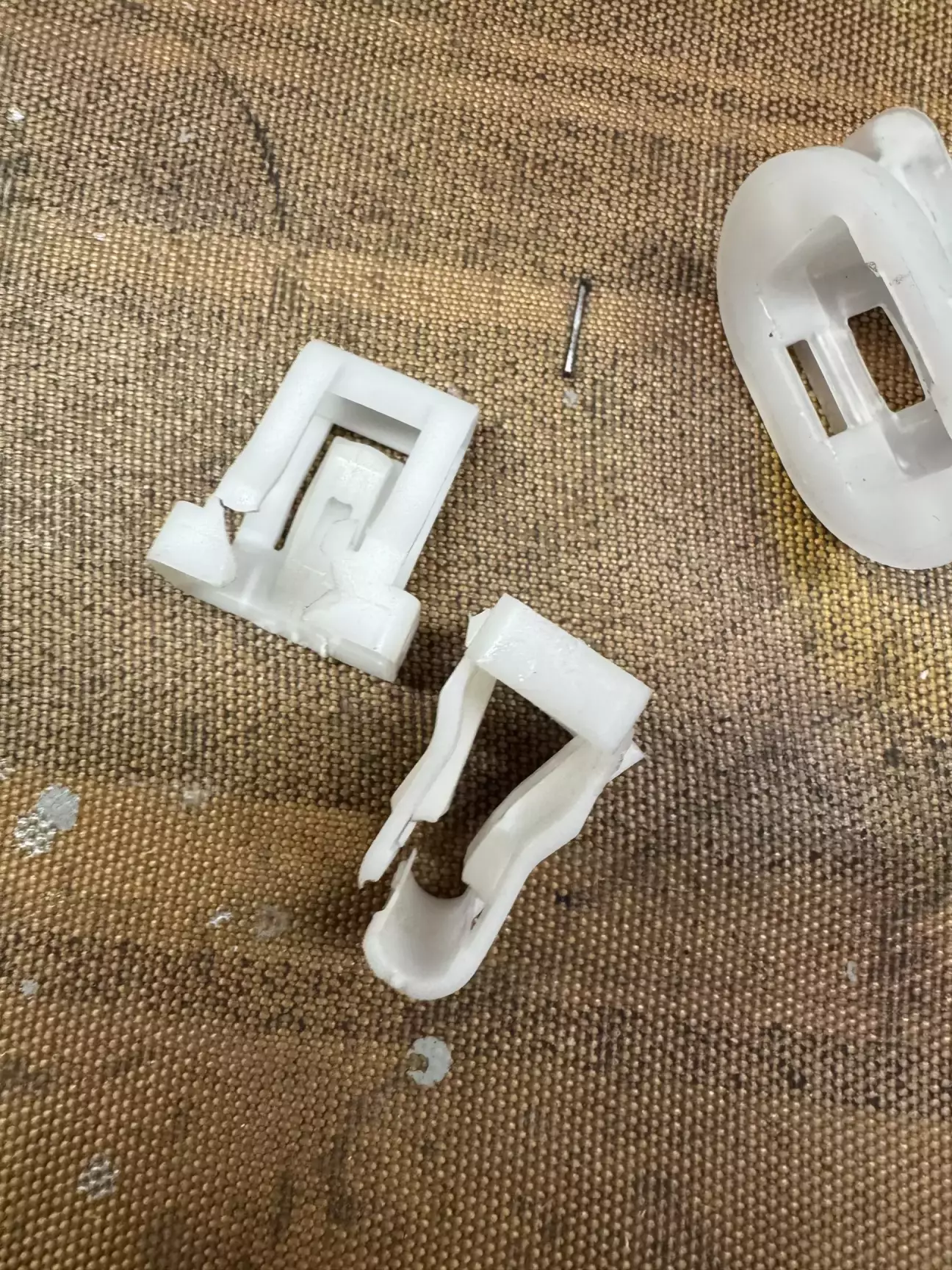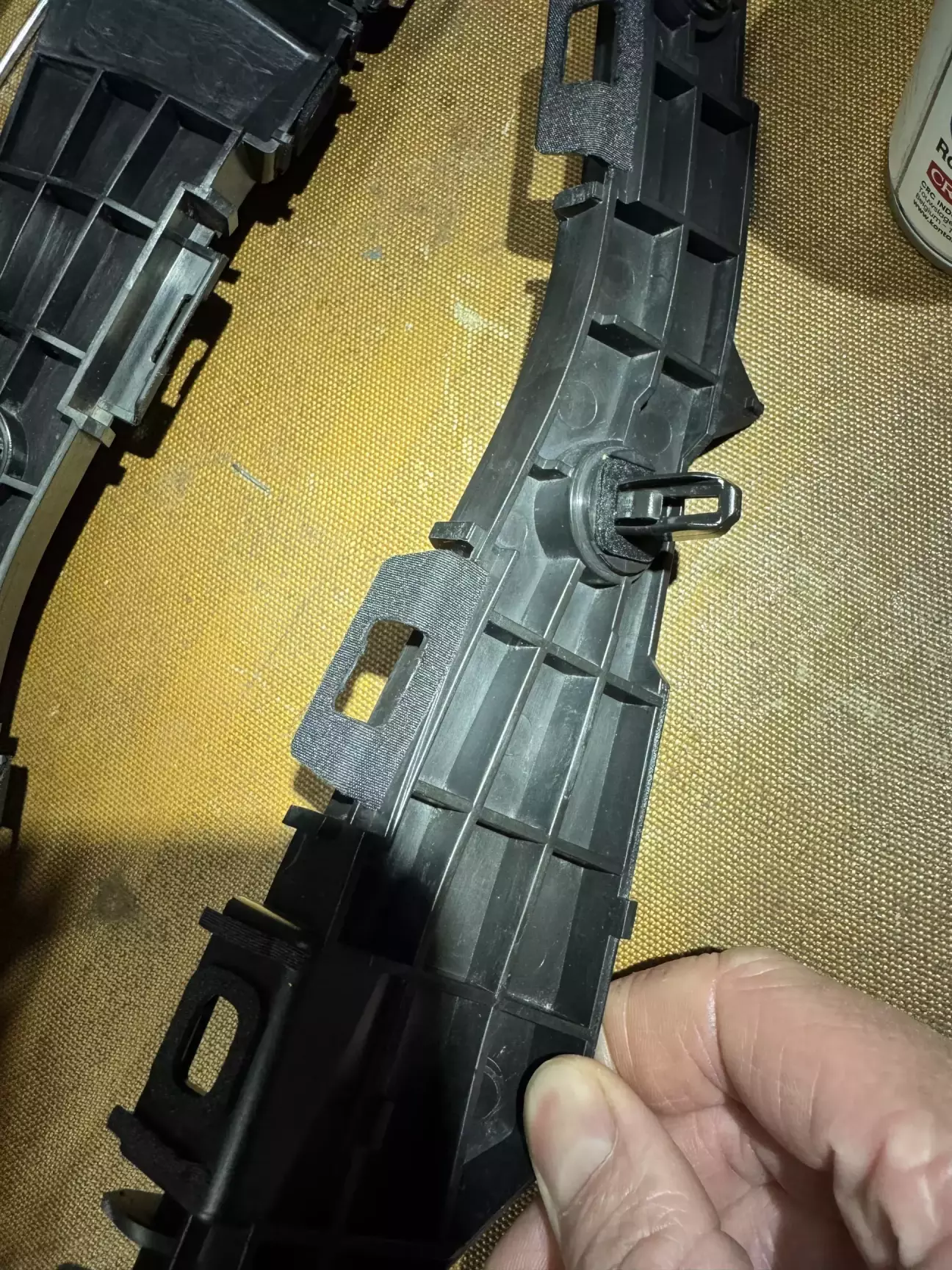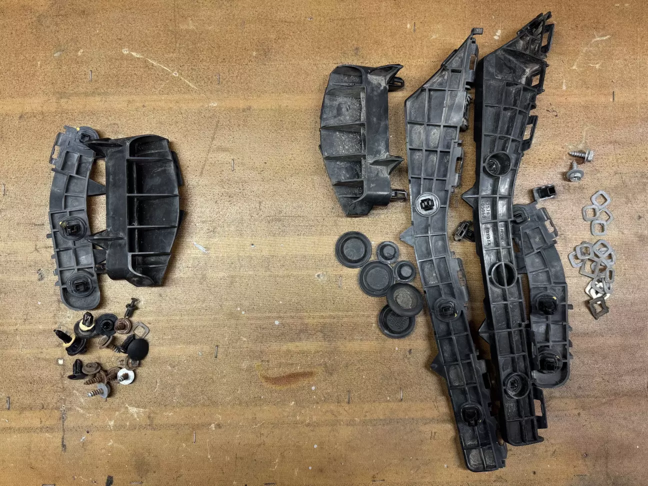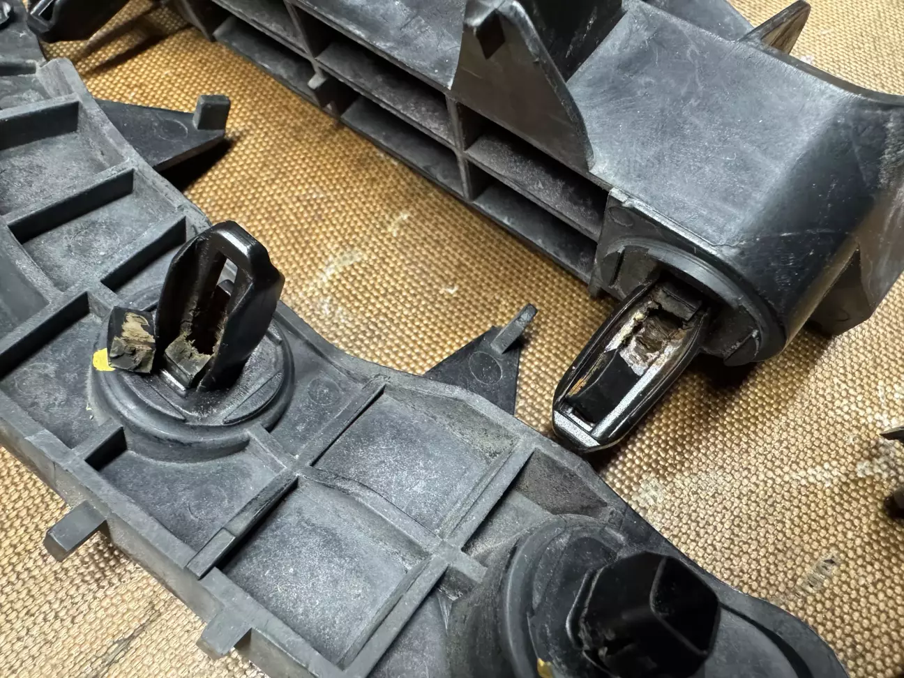 Після дефектовки два кронштейни точно під заміну, ніжки, що тримають кронштейн на кузові, просто відламались, бо пластик втратив свої властивості.