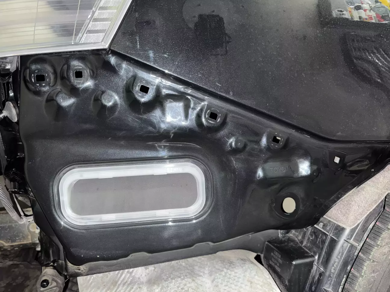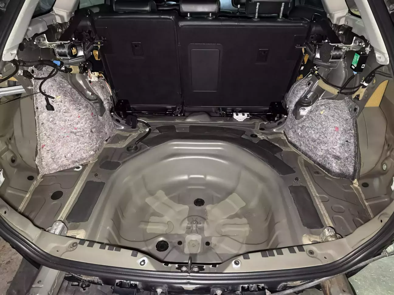 У ніші запаски в місцях, де заводська віброізоляція вже відстала через постійну вологу, хоч як я хотів наклеїти 100500 листів вібри, але здоровий глузд переміг , тому щоб максимально зберегти кузов, я вирішив нанести шовний поліуретановий герметик «а-ля по заводу».