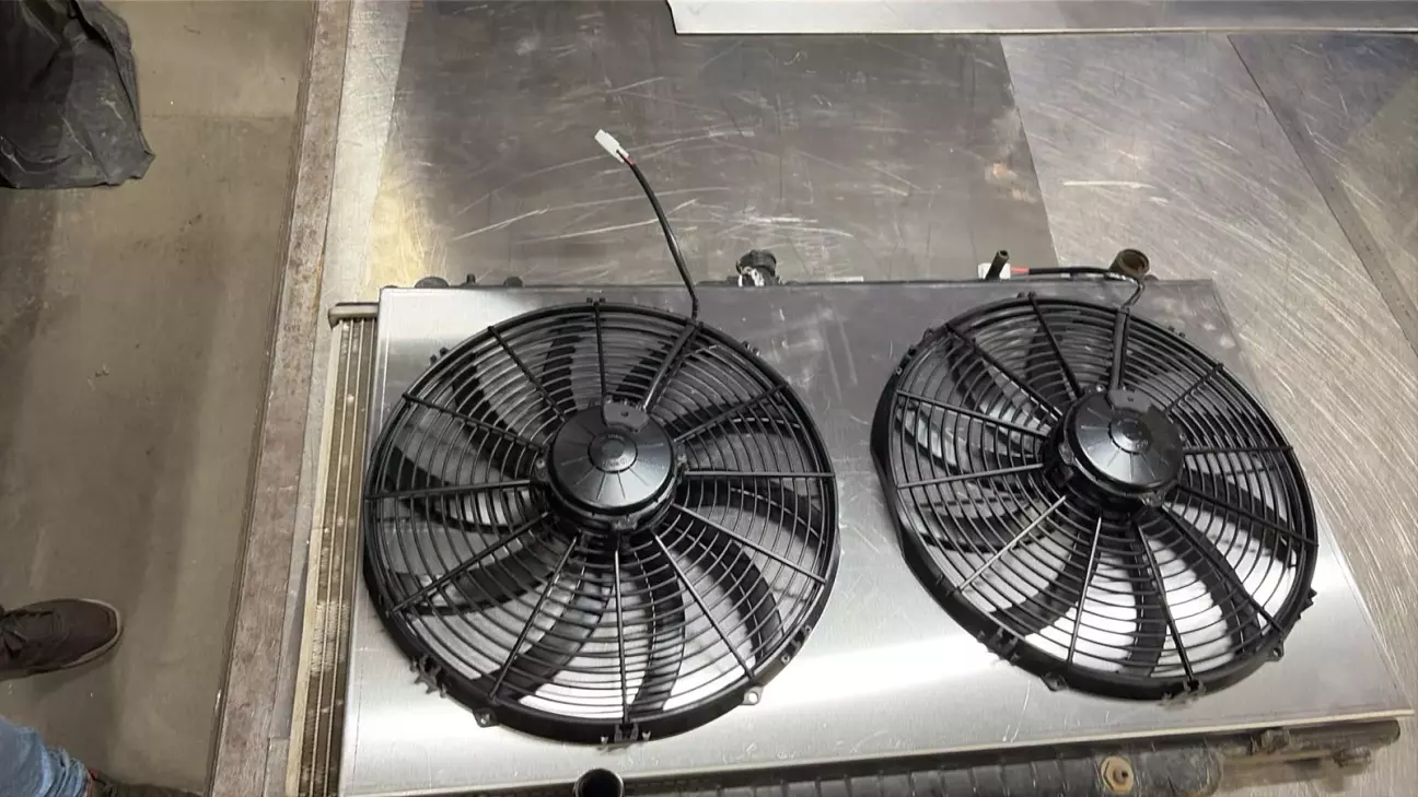 Також, спершу думав залишити вентилятори від MB Vito, які стояли на рідному двигуні, але вони займали багато місця. Тому придбав вентилятори Spal, і виготовив під них дифузор, який добавив місця між радіатором і двигуном.