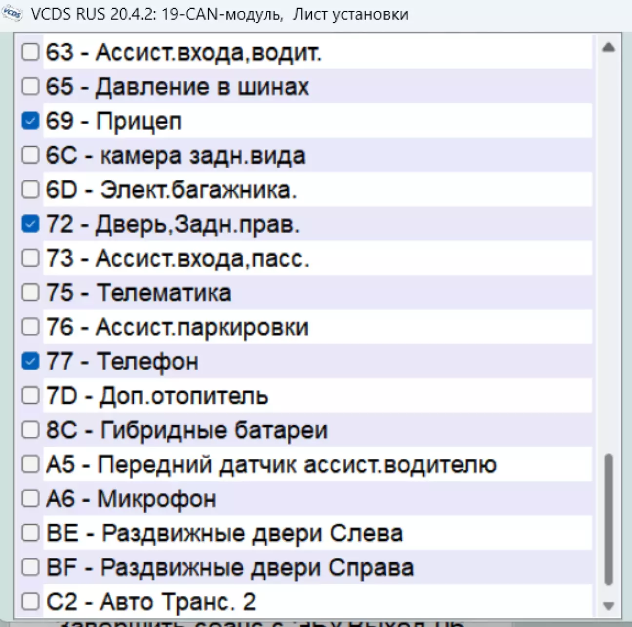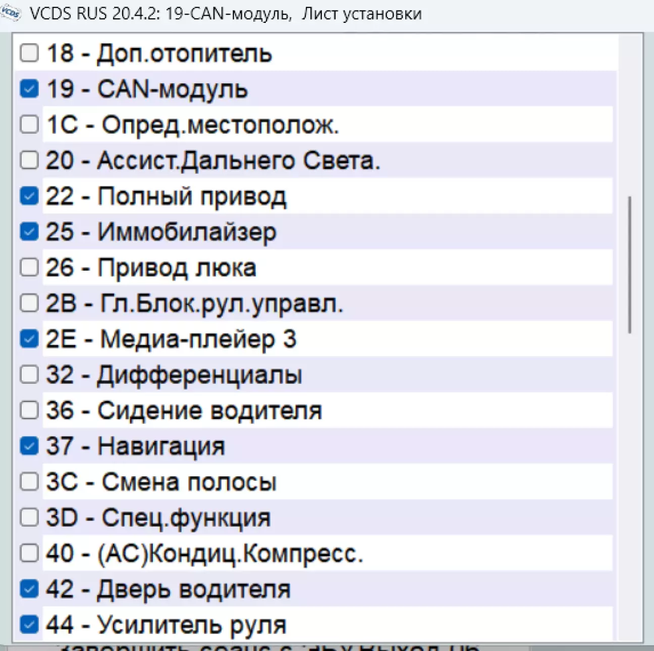 2. Зберігаю записаний в нього список встановлених на авто компонентів: