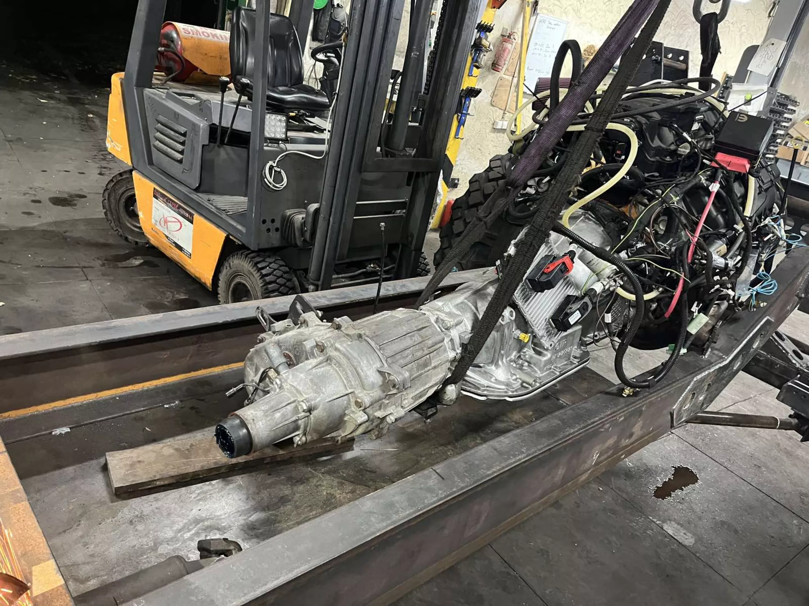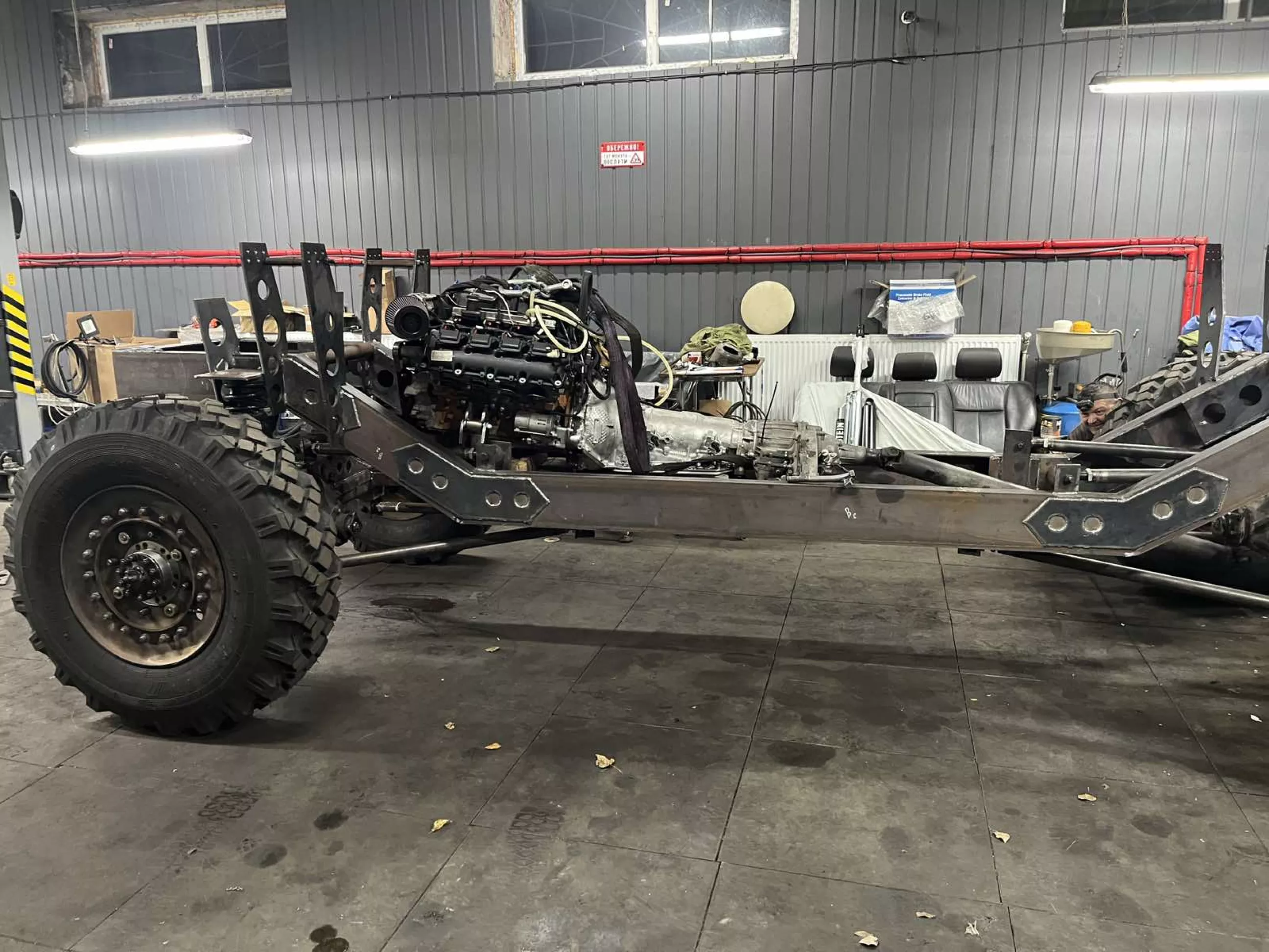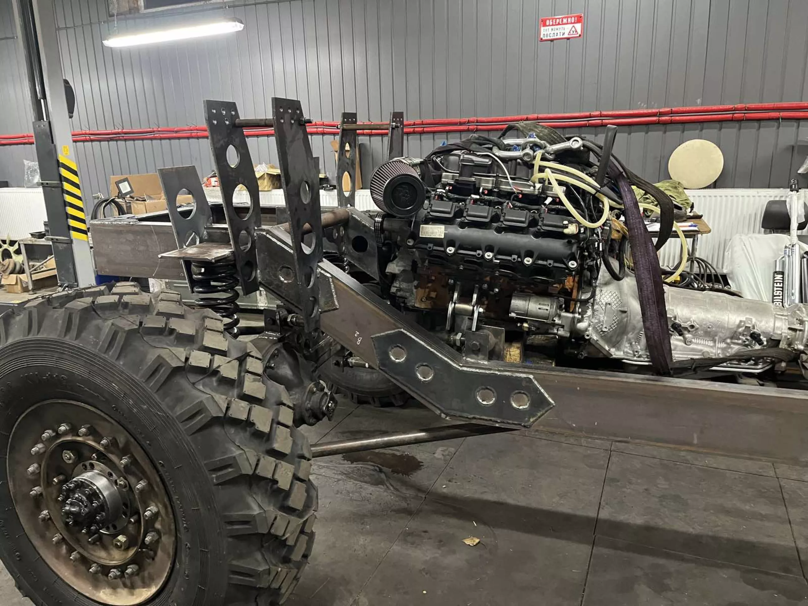 пока, но с перспективой увеличения диаметра шин ( что конструктивно учитывается), диски были найдены от какого то Унимога вроде, разборные. Так как переходная плита для соединения HEMI и АКПП4l80e не получилась из за конструктивных особенностей двигателя, принято решение и выполнено переварка колокола акпп