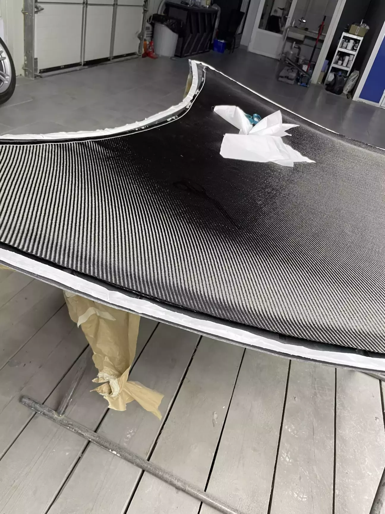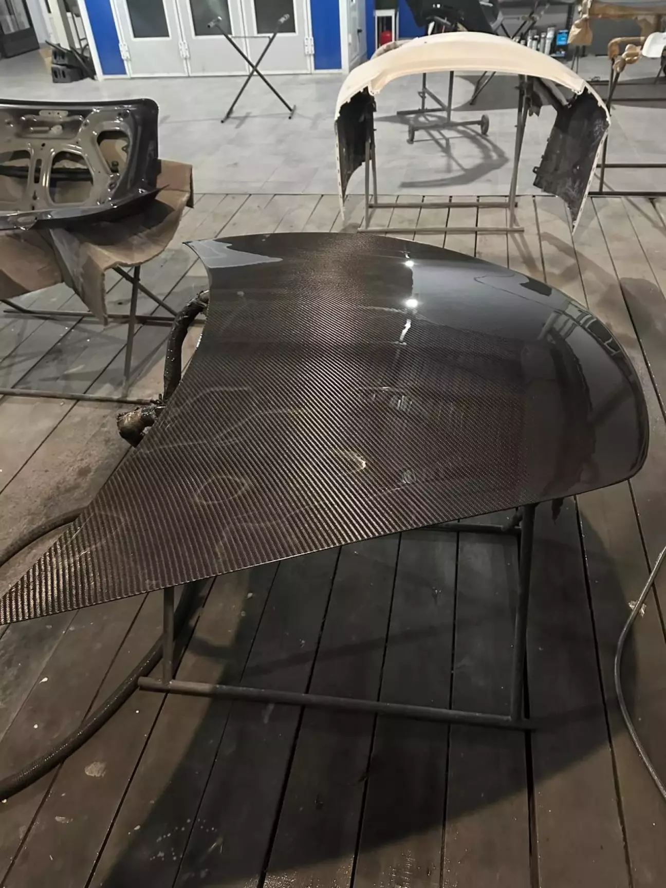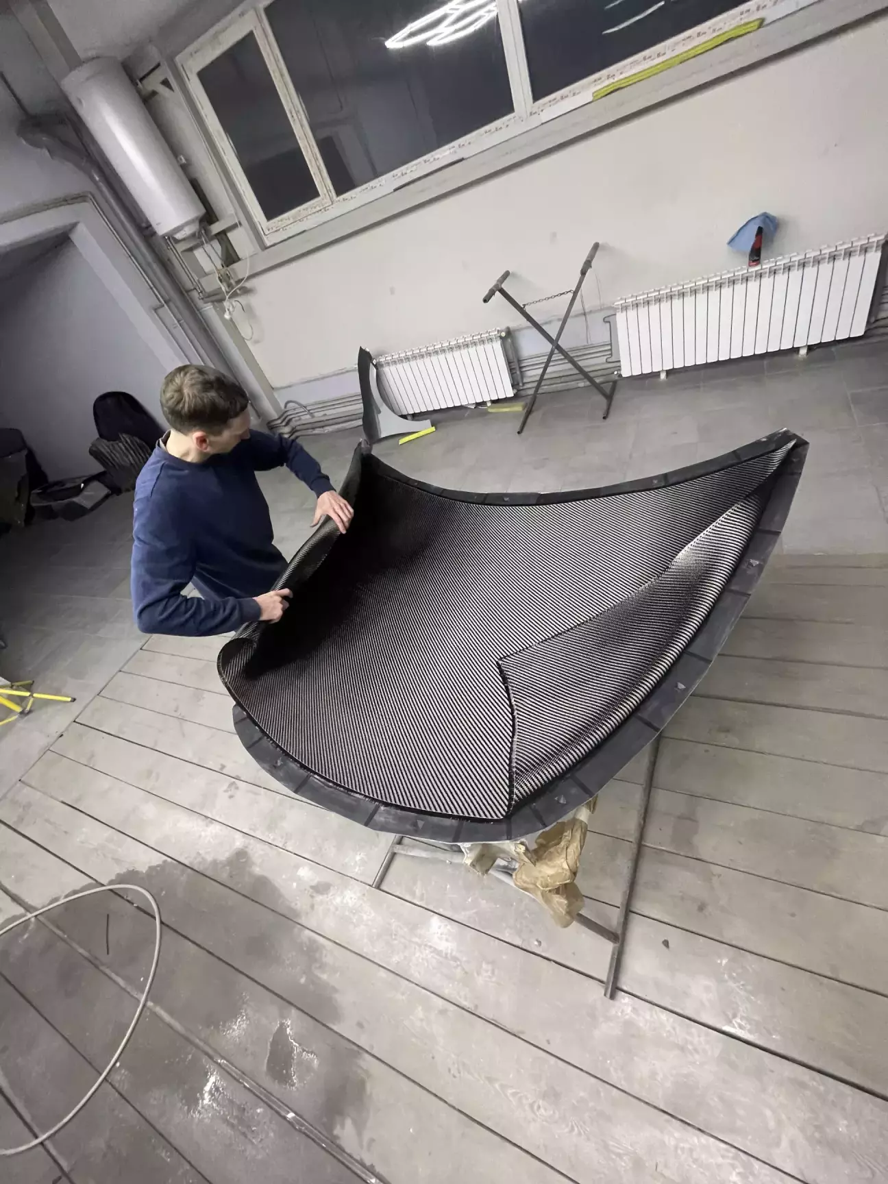 потім почав шукати капот в гарному стані та в колір і був дуже здивований, що це проблема знайти ʼціна-якістьʼ. Рішення спробувати зробити карбоновий капот прийшло одразу, бо він вийде приблизно на ті самі гроші як оригінальний в колір, гарного стану.