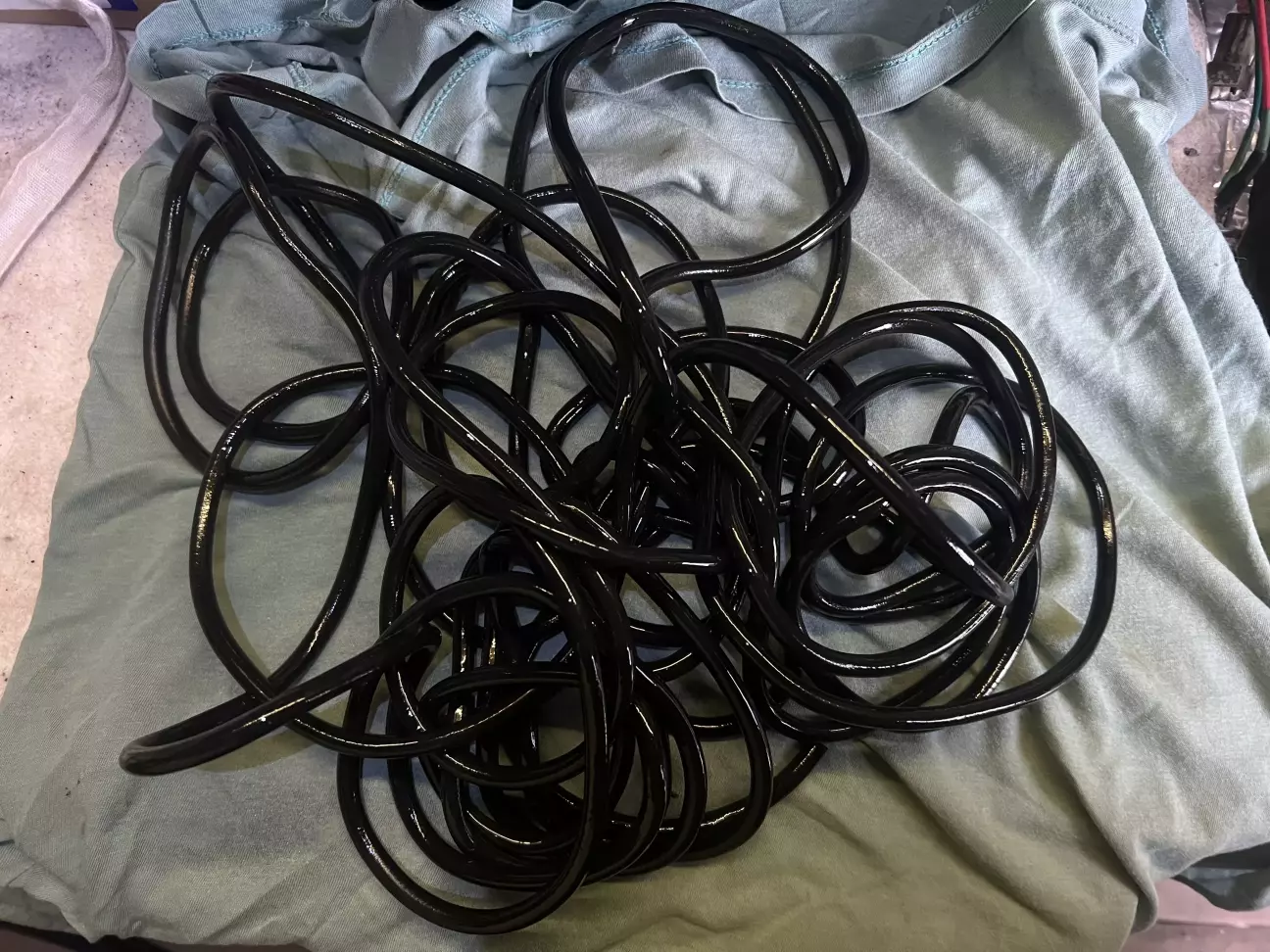 В експерименті використовував жгут d7 довжиною 10м. наніс силікон (залишилось приблизно до метру). Ущільнювач знятий з двері пасажира і розсувної, вирівняв, в середину теж наніс силікон. Жгут легко заправив в ущільнювач пасажира, в ущільнювач розсувної двері яка має багато вигинів жгут заправлявся дуже повільно і тяжко (жгут легко рветься).