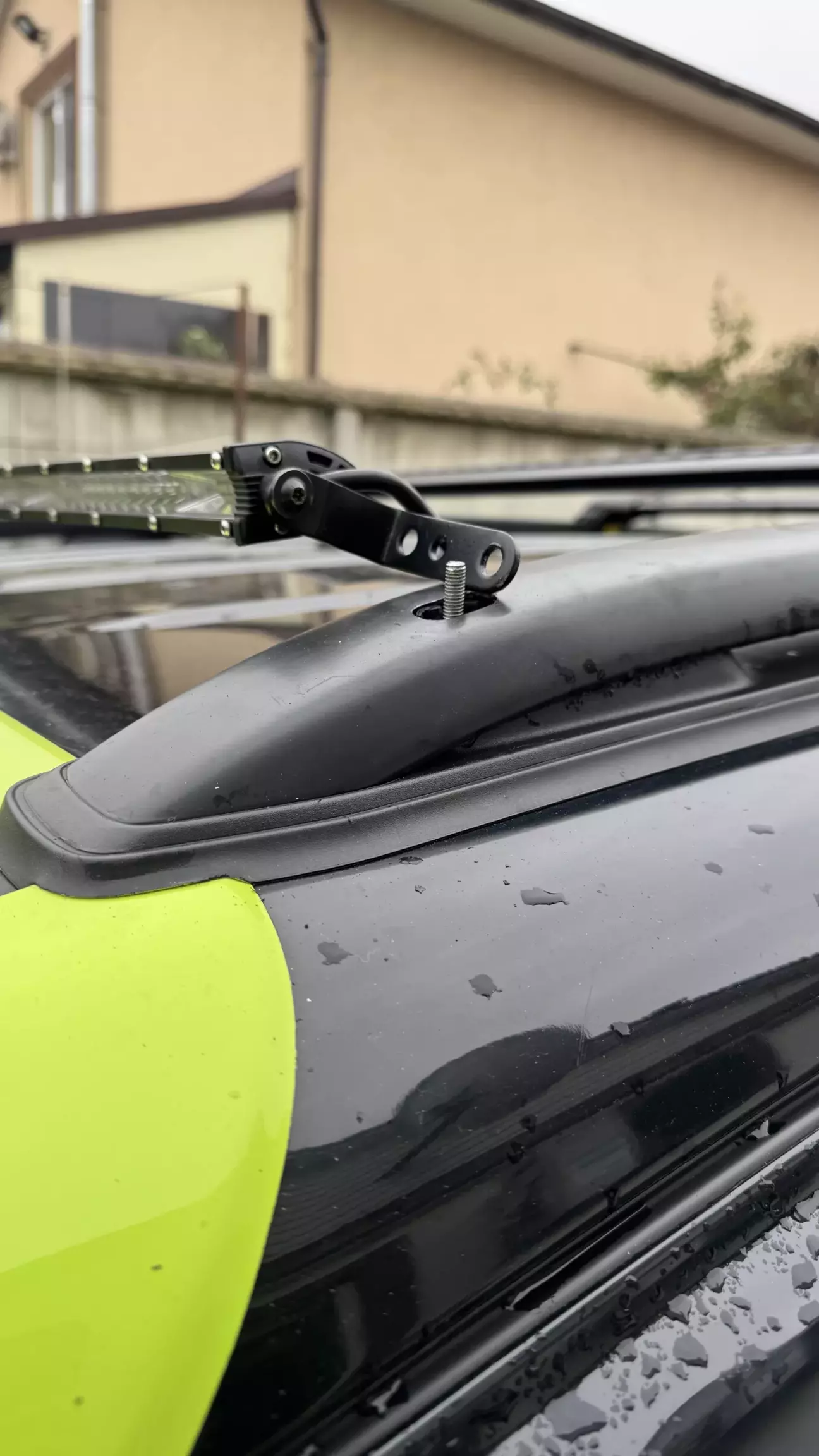 Рейлінг кріпиться на 4 точки гвинтами 6мм, і тільки під передніми заглушками є місце в яке можна щось нахімічити 🤔. Кронштейни зробив сам, взявши металеву полосу 2мм відрізав приблизну довжину, вигнув з одного боку під 90°, зробив отвори 🕳️, пофарбував і вже по місцю прикинув, наче норм 🤨.
