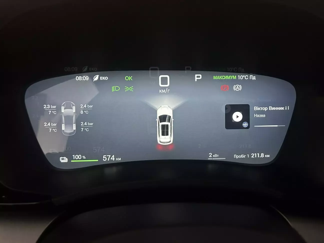 Виробник на приборній панелі вказує запас ходу 605 км. (на батареї 87 кВт). Ця цифра працює в ідеальних умовах (при плюсовій температурі, без включених підігрівів, клімату, світла та на швидкості яка не перевищує 70-80 км./год.). Якщо автомобіль експлуатується на більших швидкостях з увімкненим кондиціонером або з використанням клімату чи у зимовий період то цифра 605 км. не буде відповідати реальному пробігу. Для цього в автомобілі є також функція яка змінює даний пробіг в залежності саме від Вашого використання автомобіля. Тобто, можна виставити пробіг автомобіля на даному заряді батареї який буде вираховуватись із загального середнього показника витрачених кіловат, що вже більш реально буде показувати пробіг в залежності від Вашого стилю їзди.