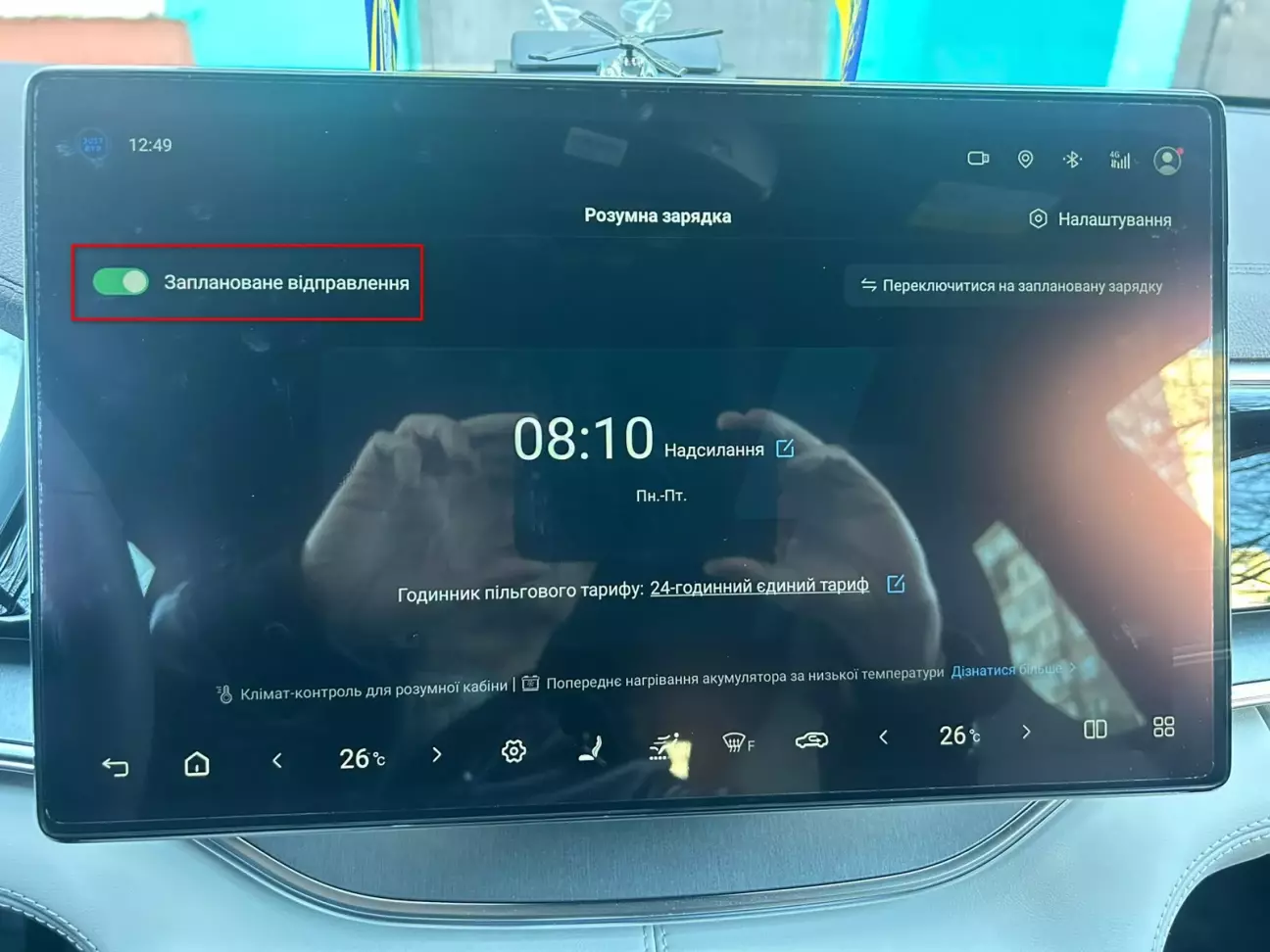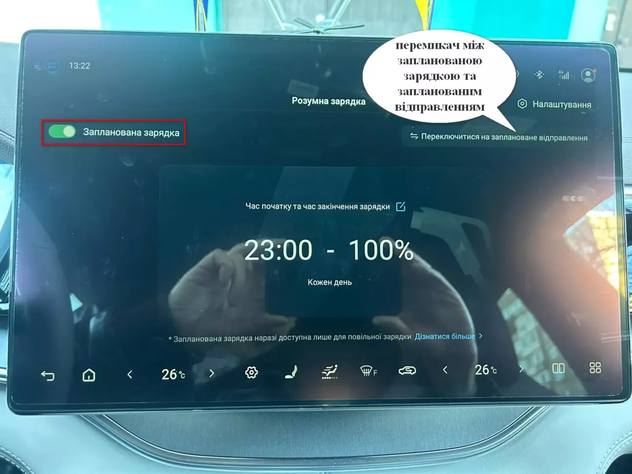 і з правої сторони ПЕРЕКЛЮЧИТИСЬ НА ЗАПЛАНОВАНЕ ВІДПРАВЛЕННЯ (ІЗ ЗАПЛАНОВАНОЇ ЗАРЯДКИ) та зробити налаштування днів і часу під свою поїздку.⏳