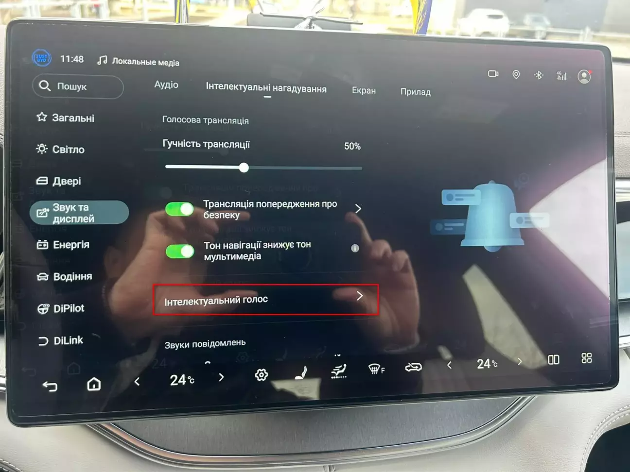 НАЛАШТУВАННЯ – ЗВУК ТА ДИСПЛЕЙ – ІНТЕЛЕКТУАЛЬНІ НАГАДУВАННЯ – ІНТЕЛЕКТУАЛЬНИЙ ГОЛОС 🙋