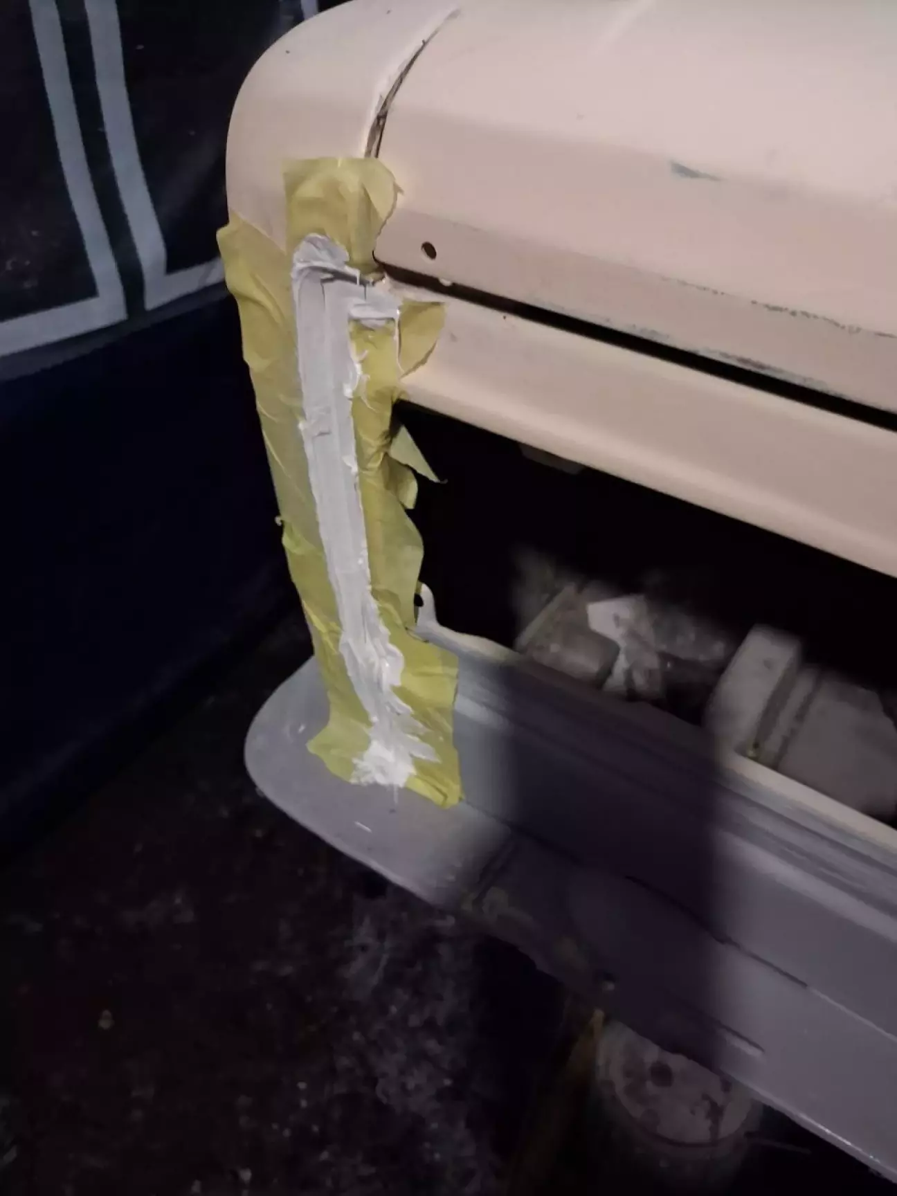 Після висихання грунту проклеюємо шви між панеллю і крилами малярним скотчем і промащуємо їх герметиком. Герметиком промащуємо і низ юбки.