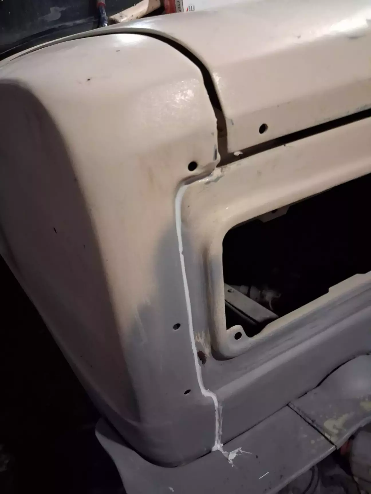 На фото видно, як виглядає суцільний шов з панеллю і точки з підсилювачем. Ззовні максимально шліфуємо шов і виводимо площину вистукуванням. Після шліфовки шву і його вирівнювання наносимо шпаклівку, я використав універсальну. Як її наносити - написано в інструкції