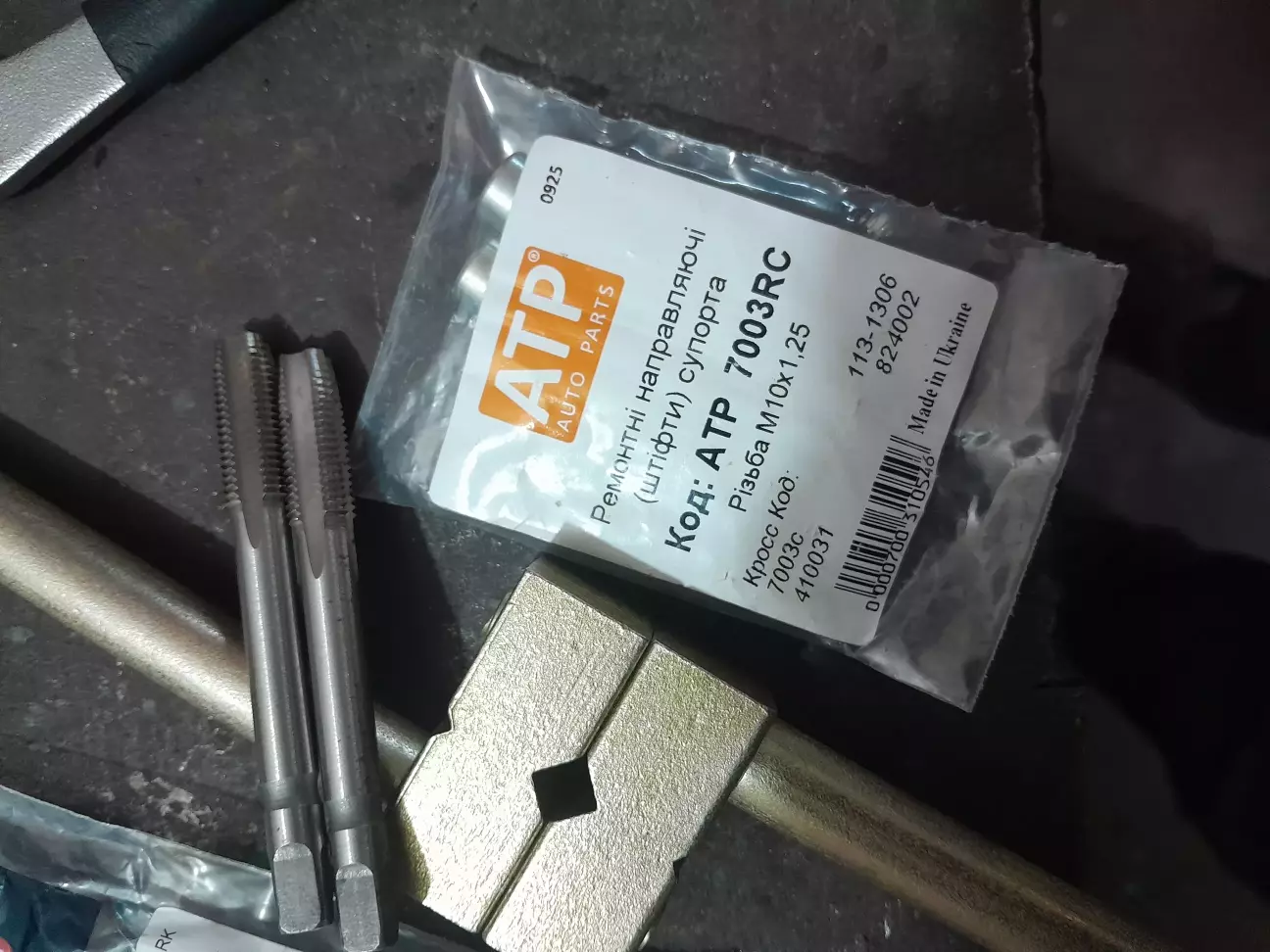 Купував машину, думав по передку ходовку треба буде пересипати, бо щось гриміло. Опорні підшипники, передні стойки, сайлентблоки... Але виявилося все зовсім інакше. Комусь захотілось з Октавії зробити позашляховик. Тут в мене багато нецензурної лексики, але буду скромним. При цьому, я так думаю, це одна людина робила, замінили передні колодки, можливо же щось. Але ж пальці супорта треба було затягувати, що є сили. Результат - в кулаку нижній різьбі хана. І весь той грохот - то неприкручений нормально супорт. Ціна кулака 3500грн, бу 1500. Плюс підшипник... Знайшов ремонтні пальці: в стандарті різьба М8, тут М10×1,25. Купив мітчик під таку різьбу,