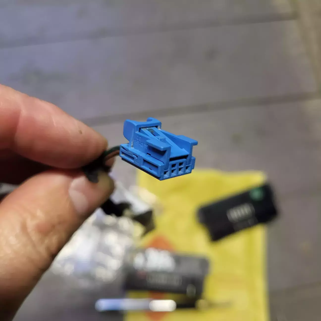 Замовляю потрібний порт та потрібний роз'єм. Також вирішив зробити перехідник з червоного роз'єма на голубий. Купив провід 4G0971765 у котрого є роз'єм мама та роз'єм папа але бежевого кольору. В мамі я зрізав ключ з однієї сторони аби війшов червоний роз'єм, а бежевий замінюю на голубий.