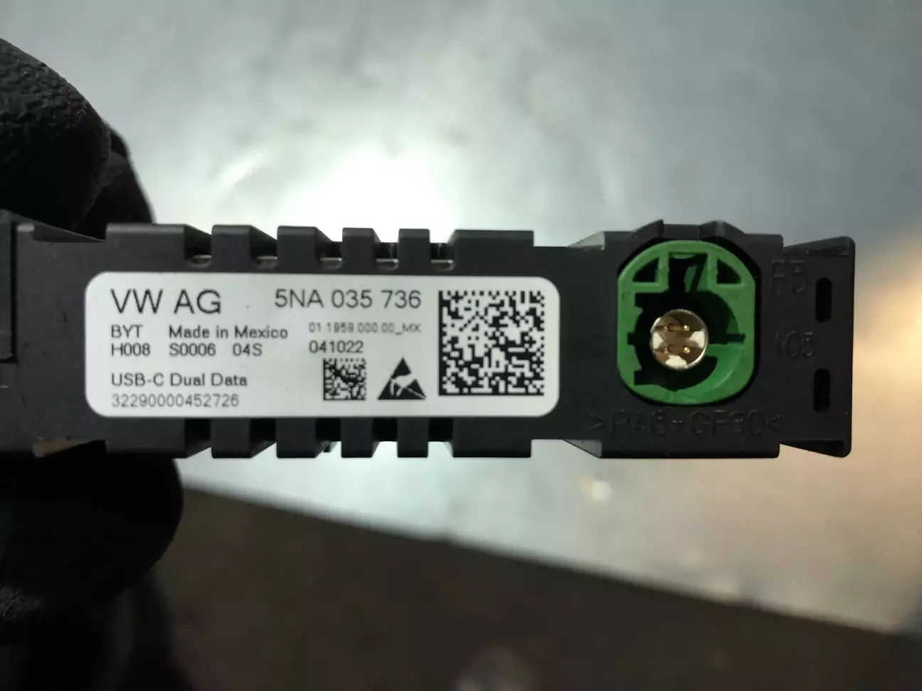 5NA035700 2xUSB Type-C (з підтримкою PD), підтримує зарядку та SmartLink/App-Connect/Full Link. Має роз'єм живлення 8K0973754C голубого кольору.