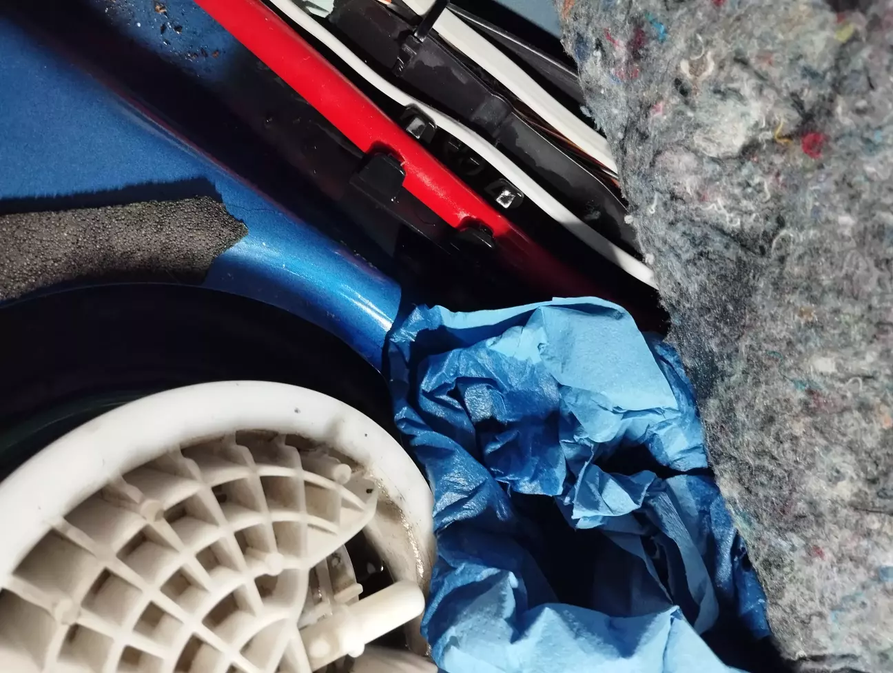 Я колись звенув увагу що вони поверх заклеені шумкою, але не зрозумів до чого цей "тюнінг". Тепер , коли виникла потребі їх зняти - все стало на свої місця. Оба лючки були по періметру зламані. Хтось намагався їх паяти,