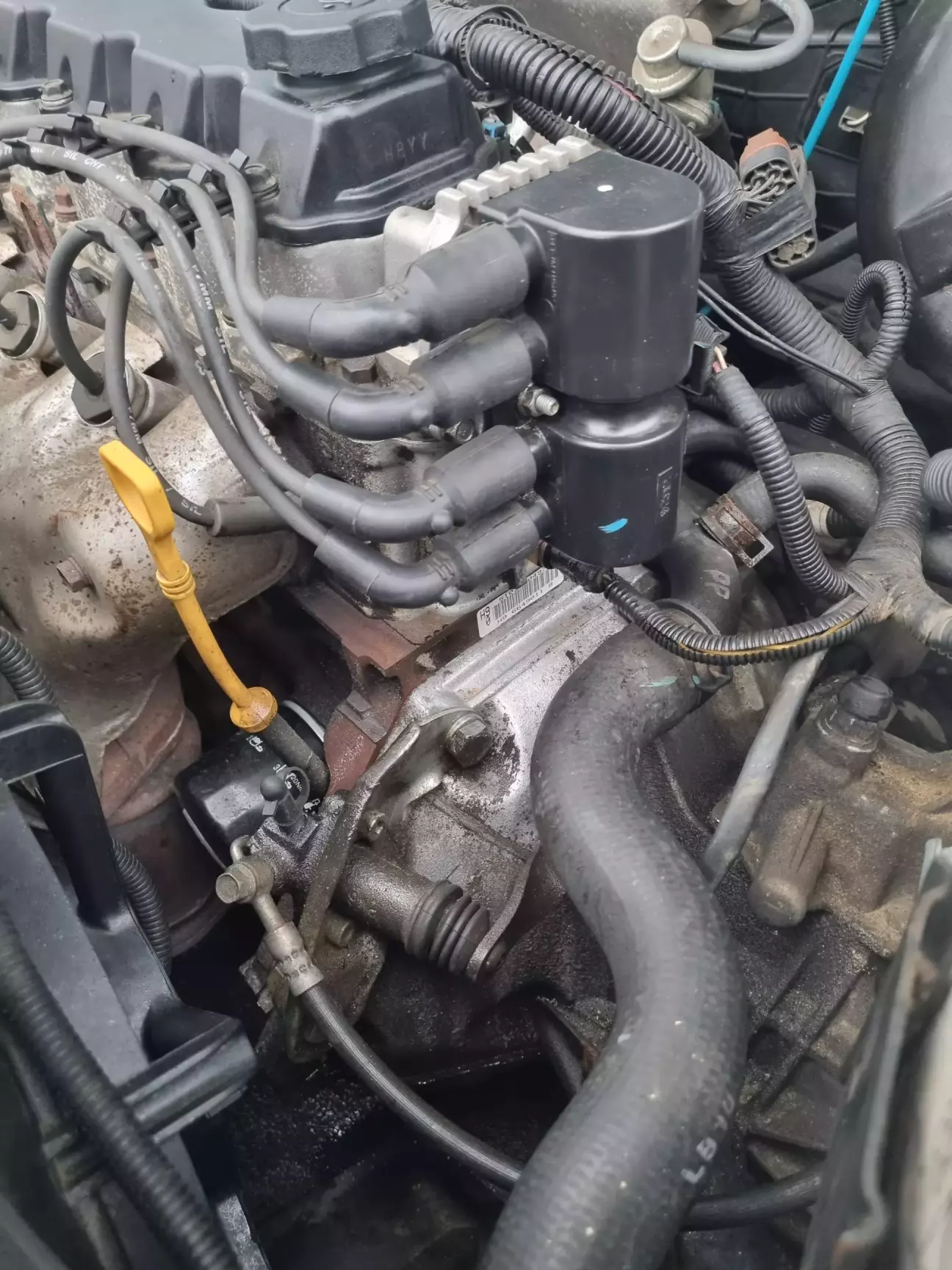 Раз уж заліз під капот, вирішив замінити кільце під катушкою. Там воно ще рідне і 5 30 масло почало сильно сочитись по вже багаторічній шубі з масла та пилу🥲 Кільце прям пластикове стало, тож не дивно. Заодно трохи відмив той бруд.