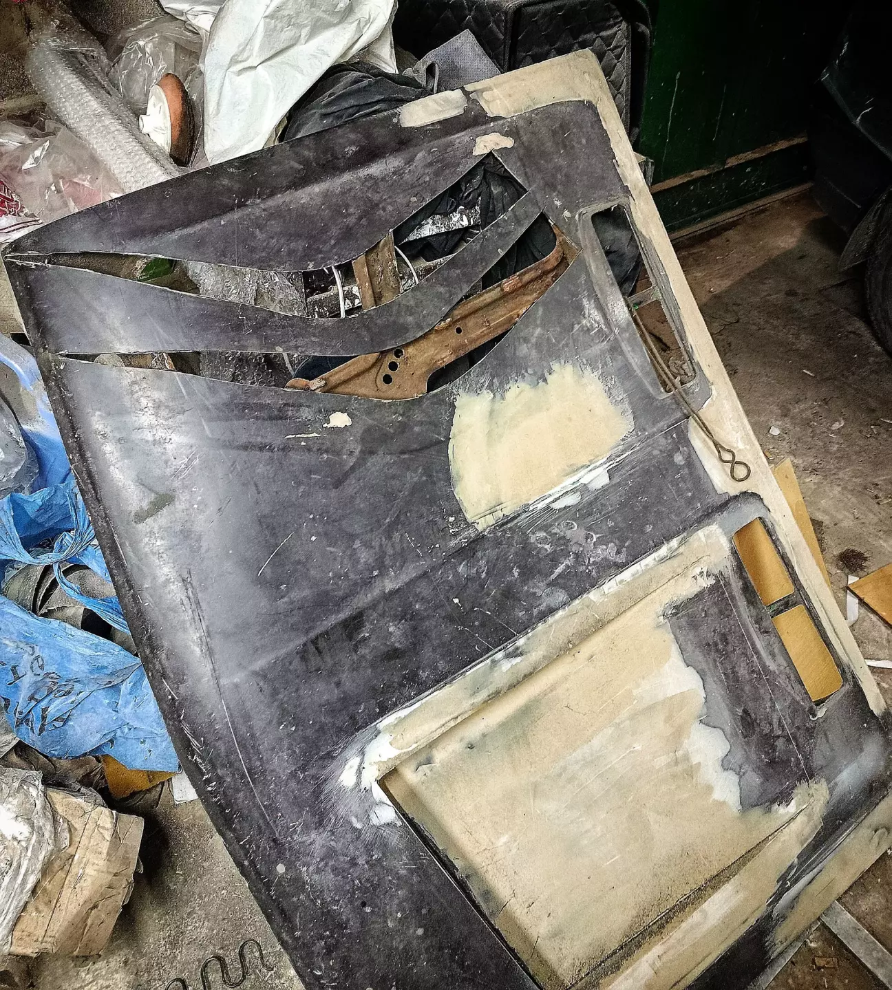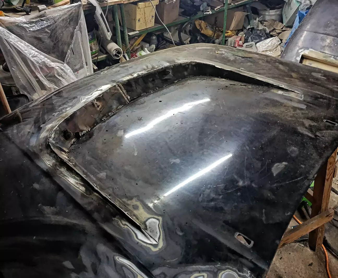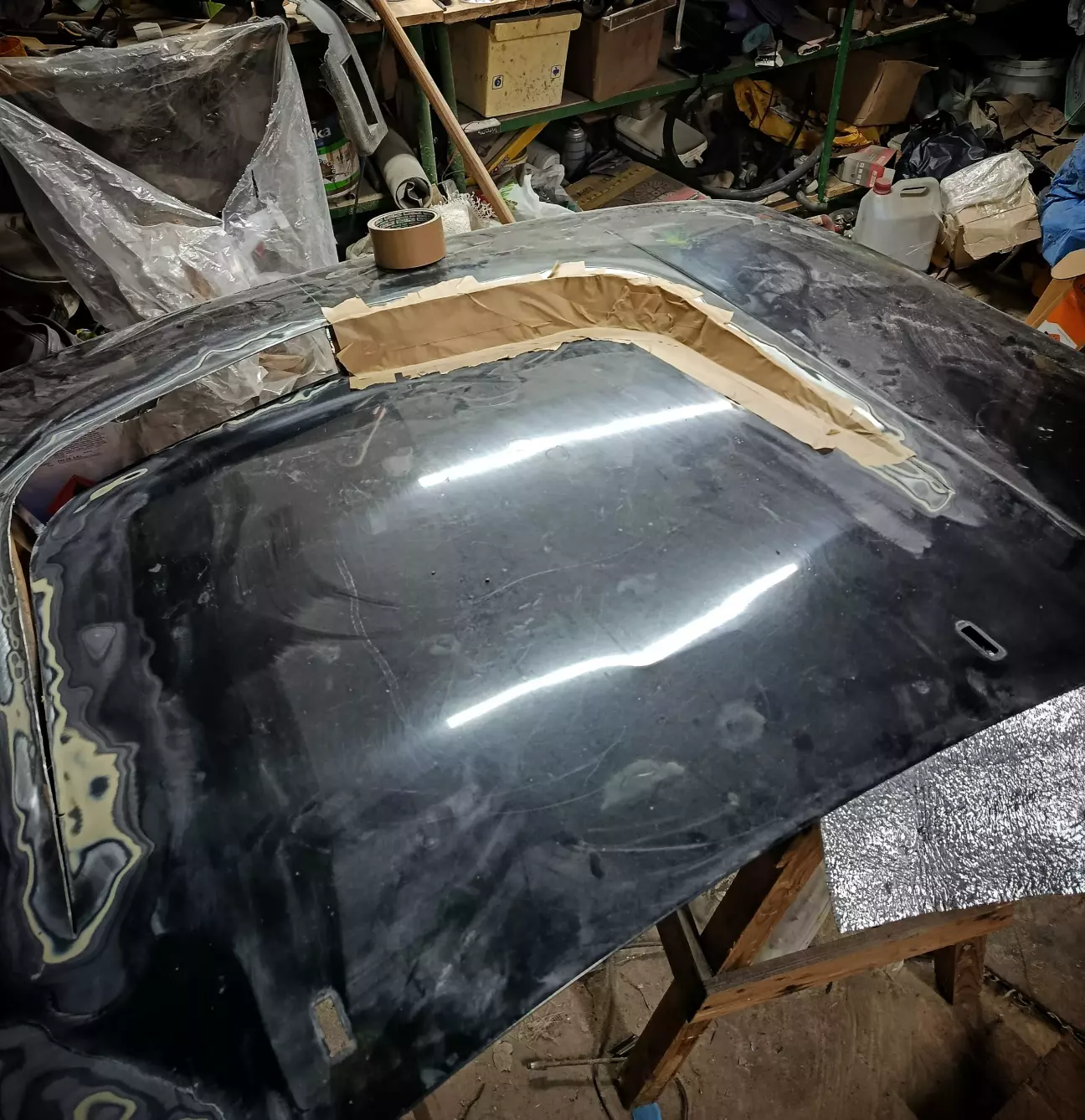 Дістаю старий капот який не встиг доробити та з нього вирізаю потрібні частини