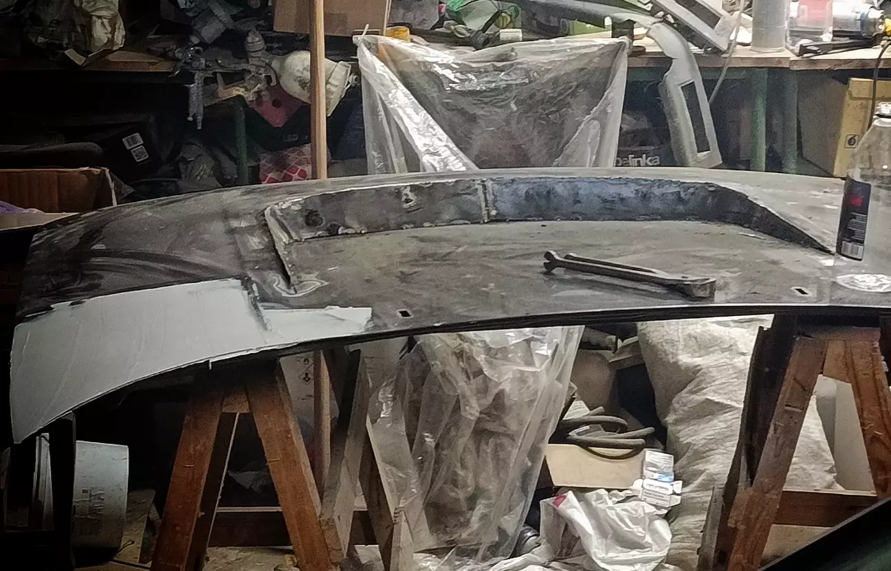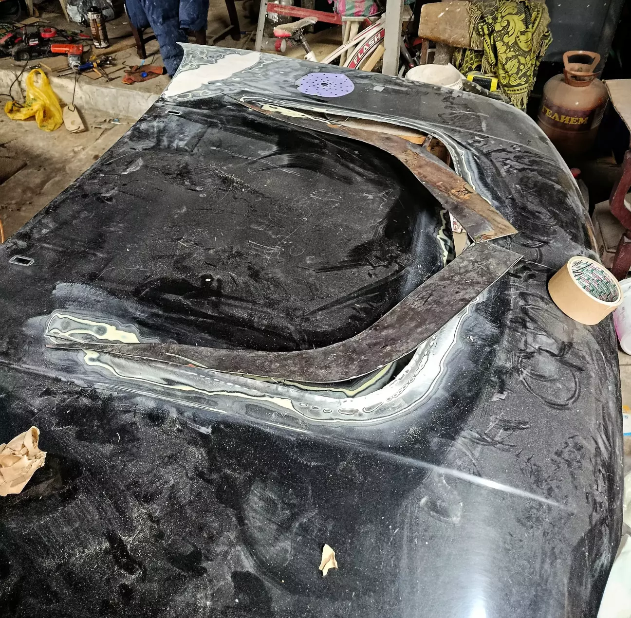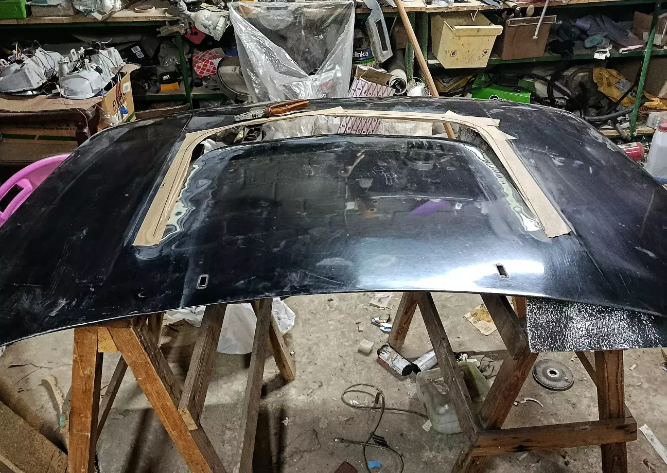 Дістаю старий капот який не встиг доробити та з нього вирізаю потрібні частини