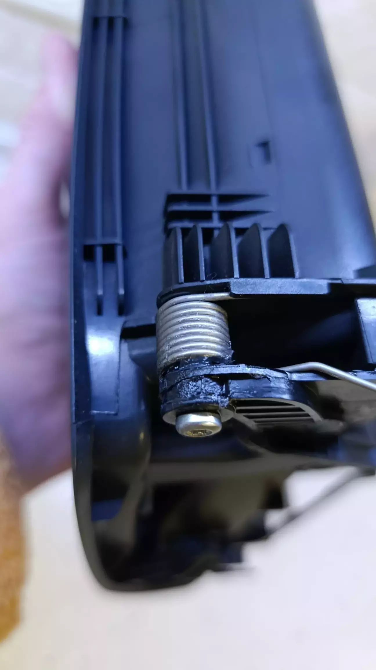 Саморізи викручував, виймав втулку, що він тримає, та змащував. Збирав у зворотньому порядку, кнопку спочатку вставив на місці, потім вставив в неї роз'єм.