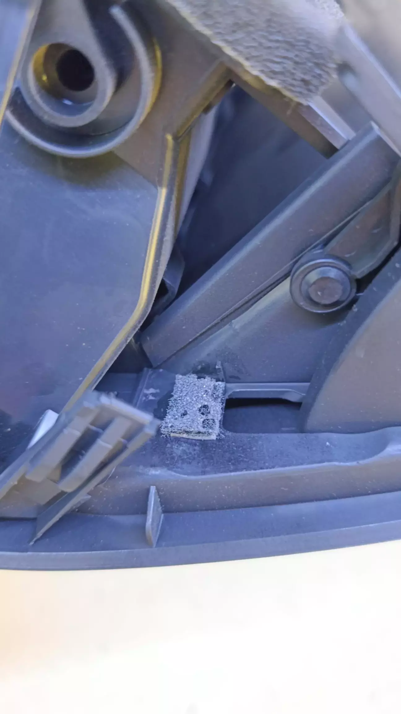 Забрав бордачок додому, розібрався, що може шуміти. У відкритому положенні є два упора кришки, які впираються в корпус, туди наклеїв войлок на двосторонній скотч 3м, попередньо знежиривши. Ще про всяк випадок змастив густою вологостійкою смазкою пружини і втулки на яких ходить кришка.