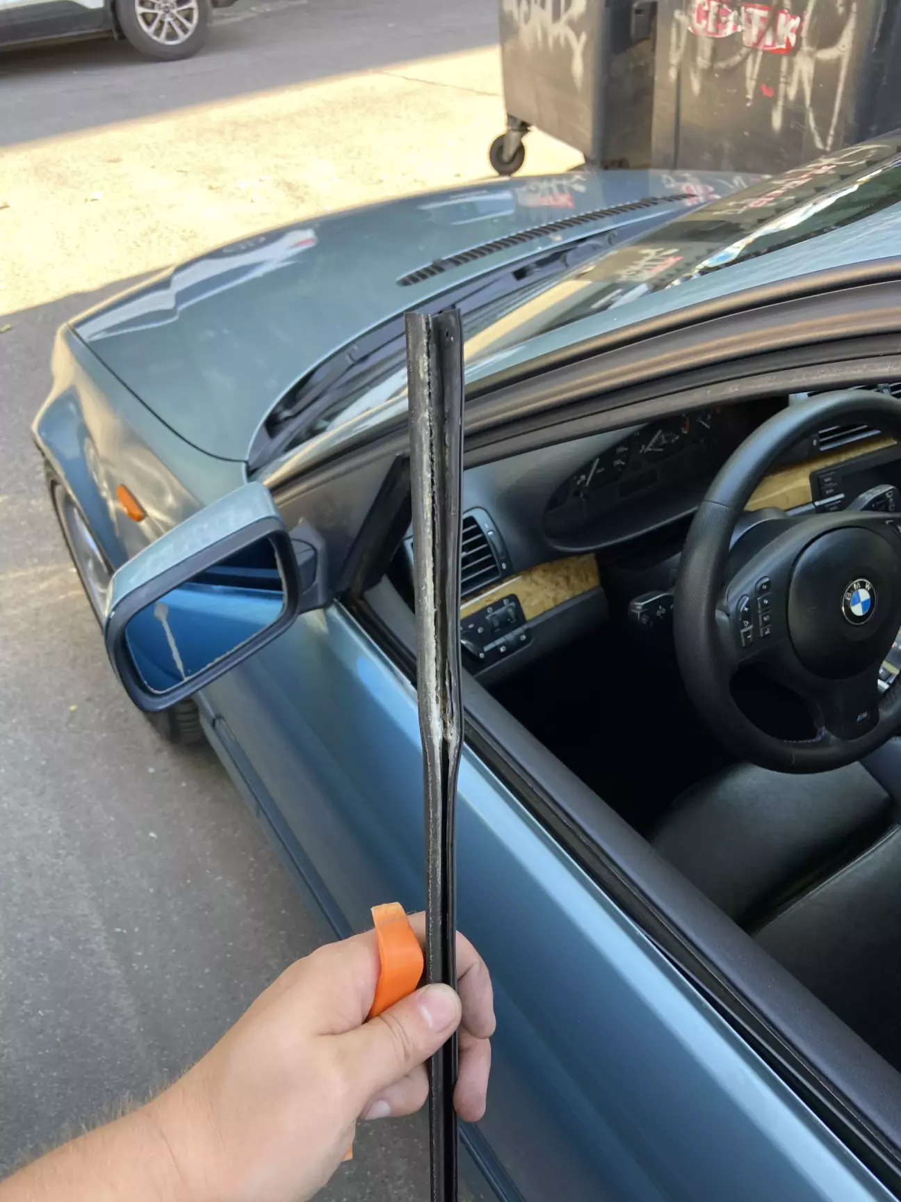 Вот в таком состоянии был водительский молдинг после того как я его снял: