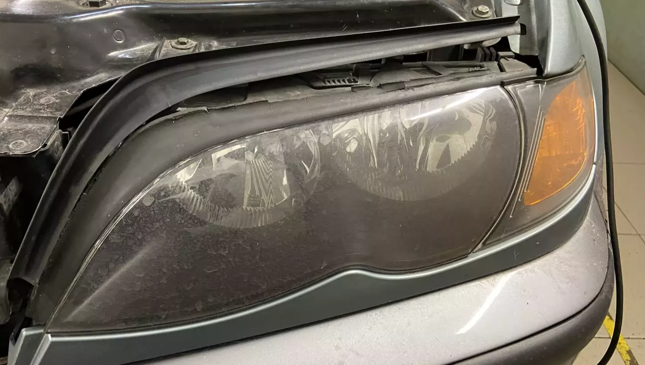И с самого начала владения е46 меня бесило, что почти сразу после мойки подкапотки там уже было куча песка и всякой грязи, я всё никак не мог понять откуда она туда летит и потом обратил внимаение на верхние резиновые уплотнители на фарах, они были в состоянии разложения и части уплотнителя вообще небыло. Вот из-за них и летело всё через щели.