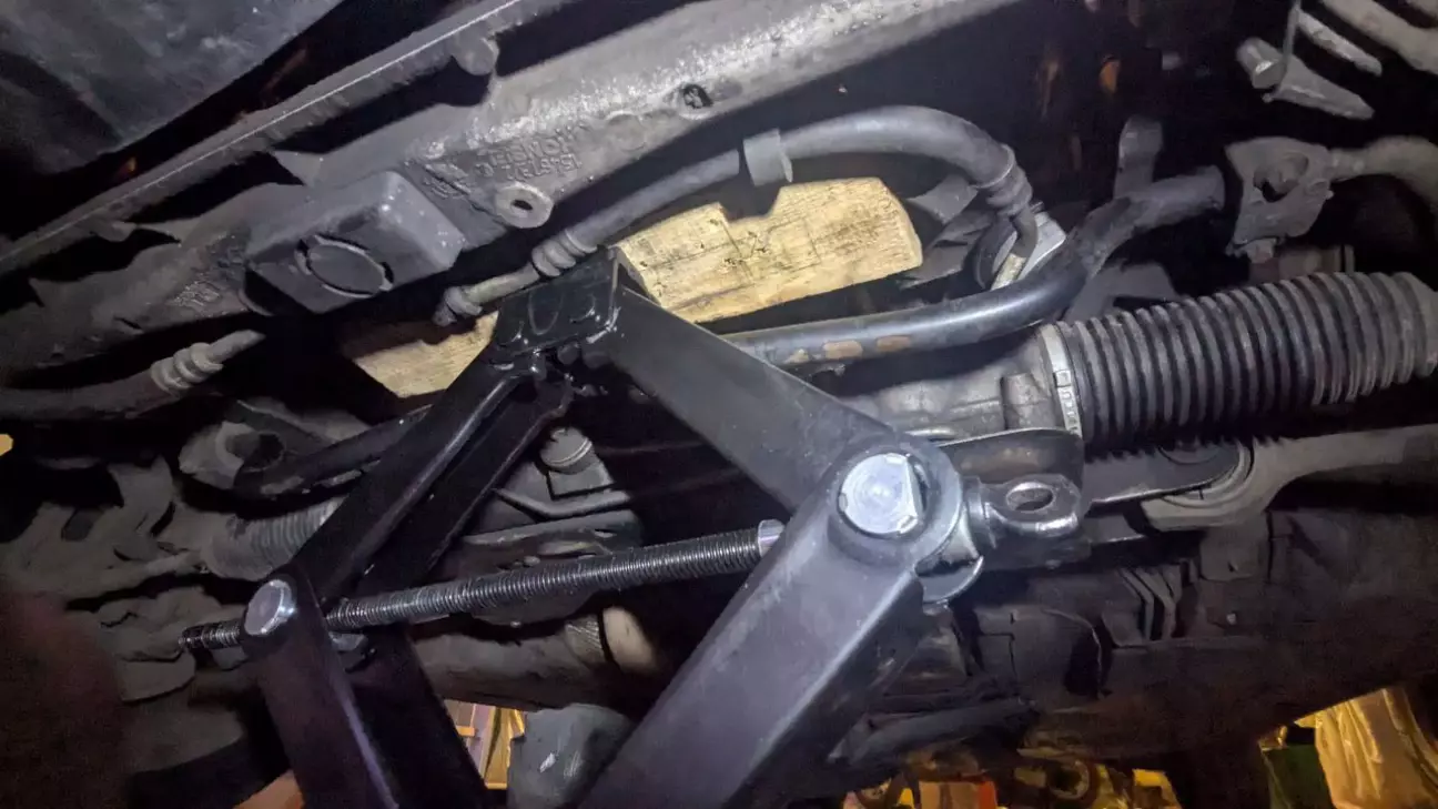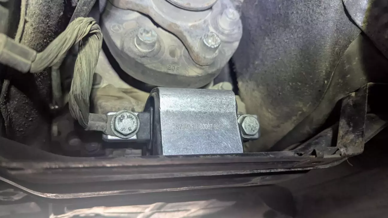 Ну і остання була подушка ДВС по водійській стороні. Тут нічого не знімав, переставив машину, теж домкратом вивісив двигун, так само знизу болт на 13, зверху на 16. Подушку замінив за 20 хвилин, з попередньою я декілька годин махався.