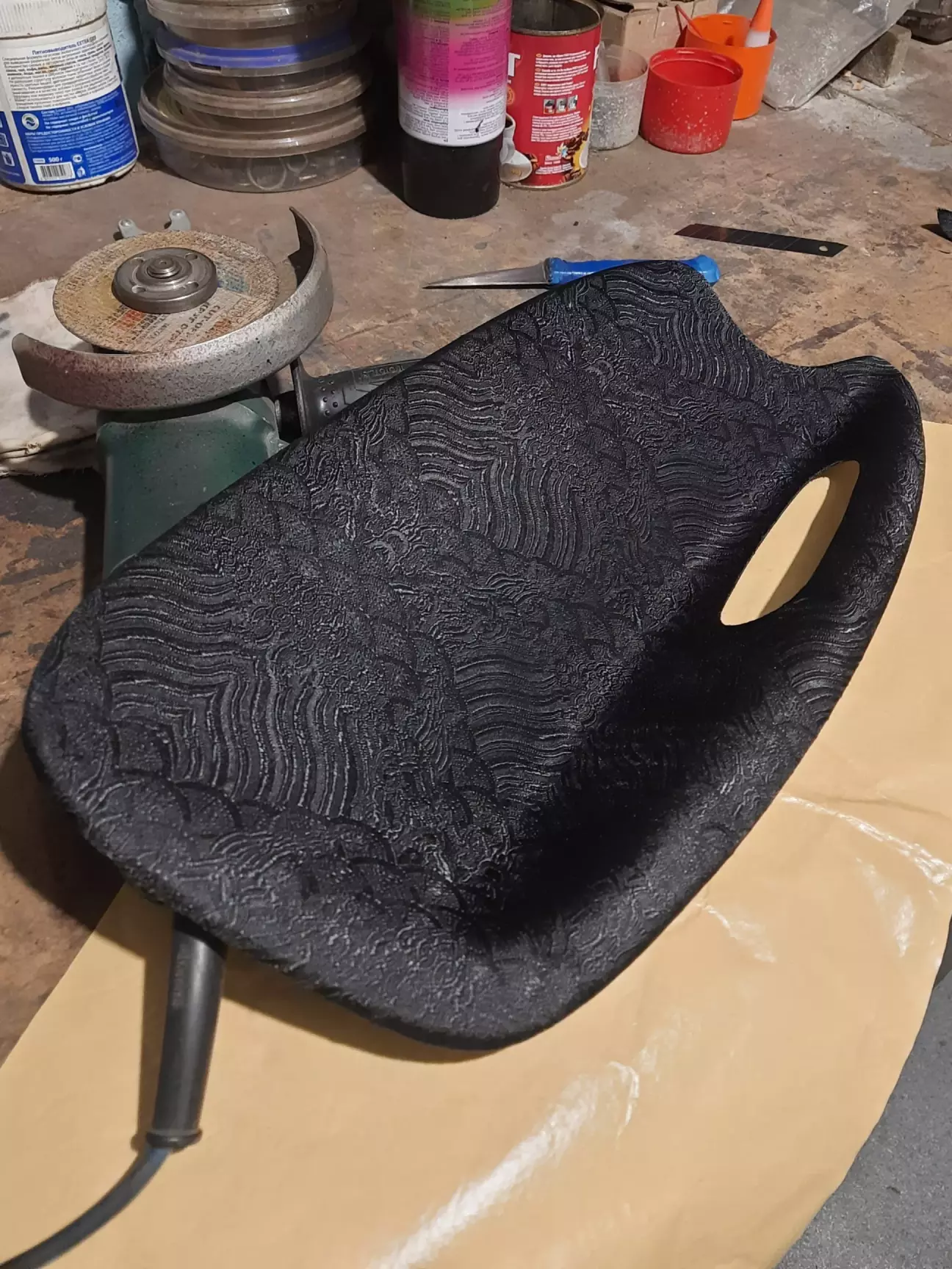Нещодавно надибав тканину на клейкій основі, яка мені дуже сподобалась, тож я вирішив що було б непогано її примінити для дверних накладок.