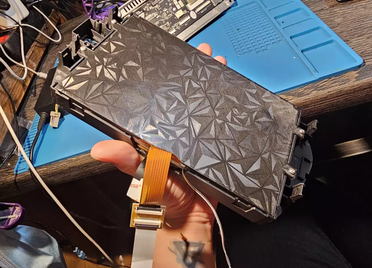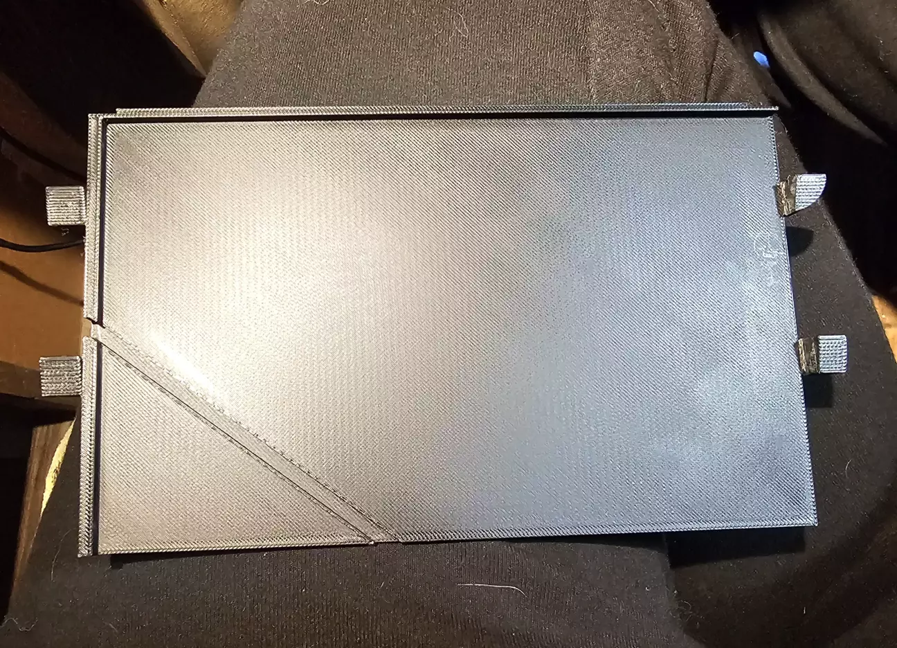 Ідея пластини в тому, що за допомогою бортів зверху та зліва відбувається позиціонування дисплею у рамці, повністю прибирає зазор і модуль перестає бовтатися у корпусі. По боках кріплення, які мають нахил 10 градусів і ідеально саджаються у рідні кріплення. Проріз у лівій нижній частині зроблено для проводки підсвітки дисплею, щоб грубо кажучи при збірці ці проводи не перекошували екран та не давили на нього, бо це може викликати артефакти на дисплеї.