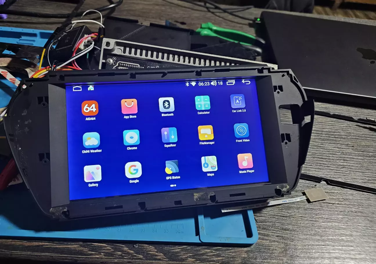 Отже, моя частина роботи - зібрати дісплейний модуль. Рішення під 7 дюймів теж є, спроектоване @yuzo, ми ж вирішили спробувати 8 дюймів. Єгор замовив у китайців екран та тачскрін і попросив їх його склеїти, що вони і зробили, позбавивши нас від непотрібного гемору.