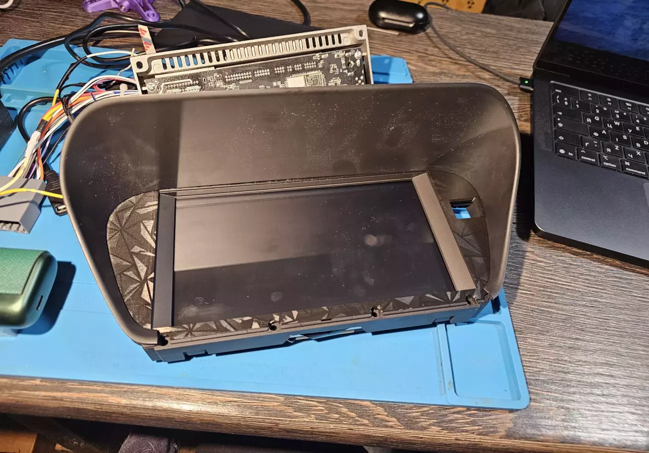 Останнє що треба зробити - це декоративну рамку на лицьову панель. По заводу там скло, нам же треба доступ до сенсорного екрану, тому це треба перемалювати, залишивши область дисплею порожньою.