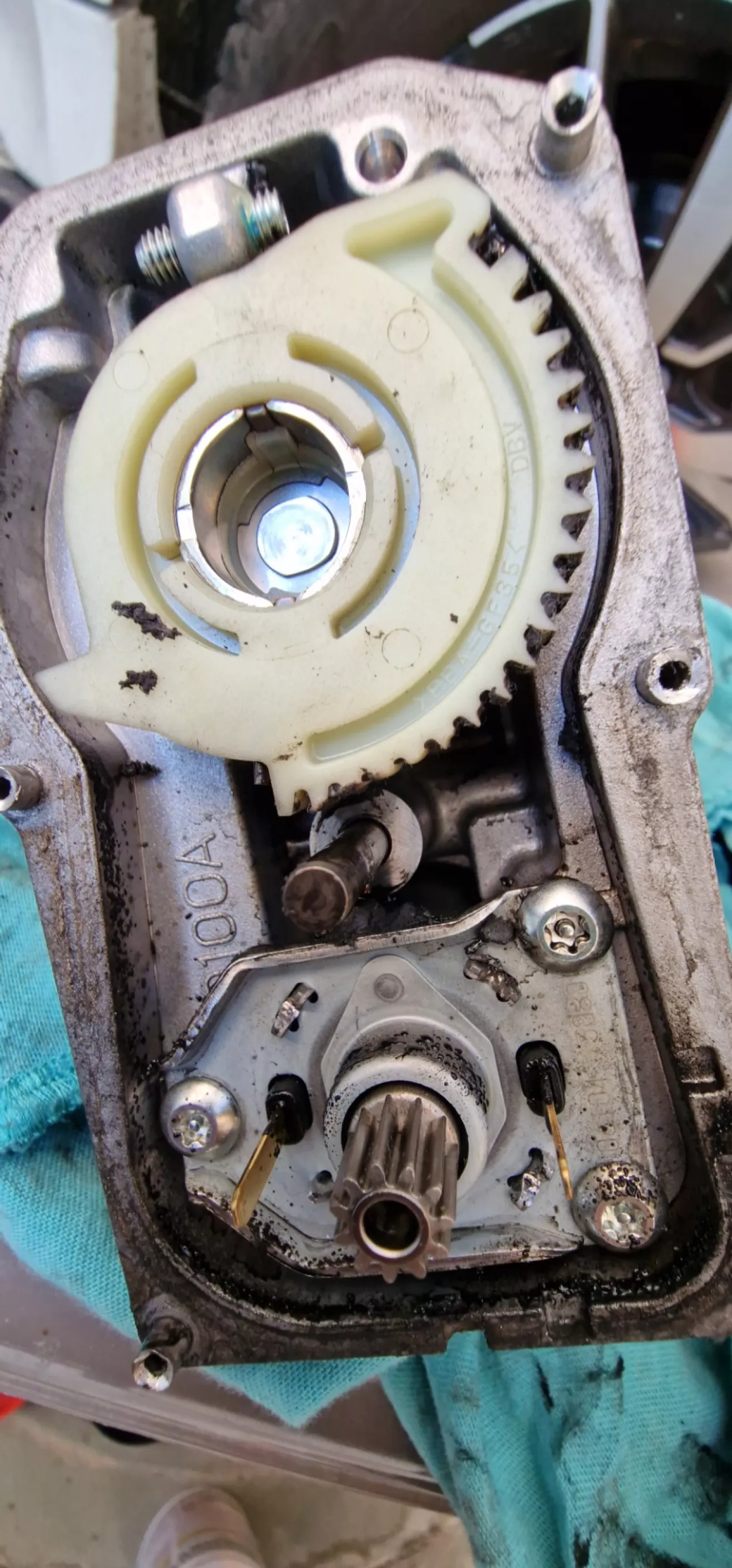 Предыстория. Пару раз выскакивал ошибка по дроссельной заслонке. Успешно стирались и дальше нормально всё функционировало. Когда вырезал сажевый и его отвязывали(егр оставил и он рабочий), ошибка по дроссельной вылезла опять. Заодно по ней аварии удалили, чтобы в случае чего не выпадала машина в аварию. Когда спускались с гор во время отпуска из под капота появился непонятный треск. Звук бы от дроссельной заслонки и как раз на малых и холостых оборотах. Вообщем чтобы не мешала скинул клему и поехал дальше. Прошло больше месяца и заметил, что машина начала греться в тянучках и пробках, особенно с включенным кондиционером, ловил температуры 106, 108 градусов. Ну думаю виной дроссельная, т.к. в этих режимах его открывается, дроссельная закрывается, расход воздуха падает, соответственно кол-во топлива меньше и температура должна падать. Вскрыл дроссельную и огорчился. Я так понимаю надо искать только в зборе, шестерёнок не найду( Смазки внутри, можно сказать нету