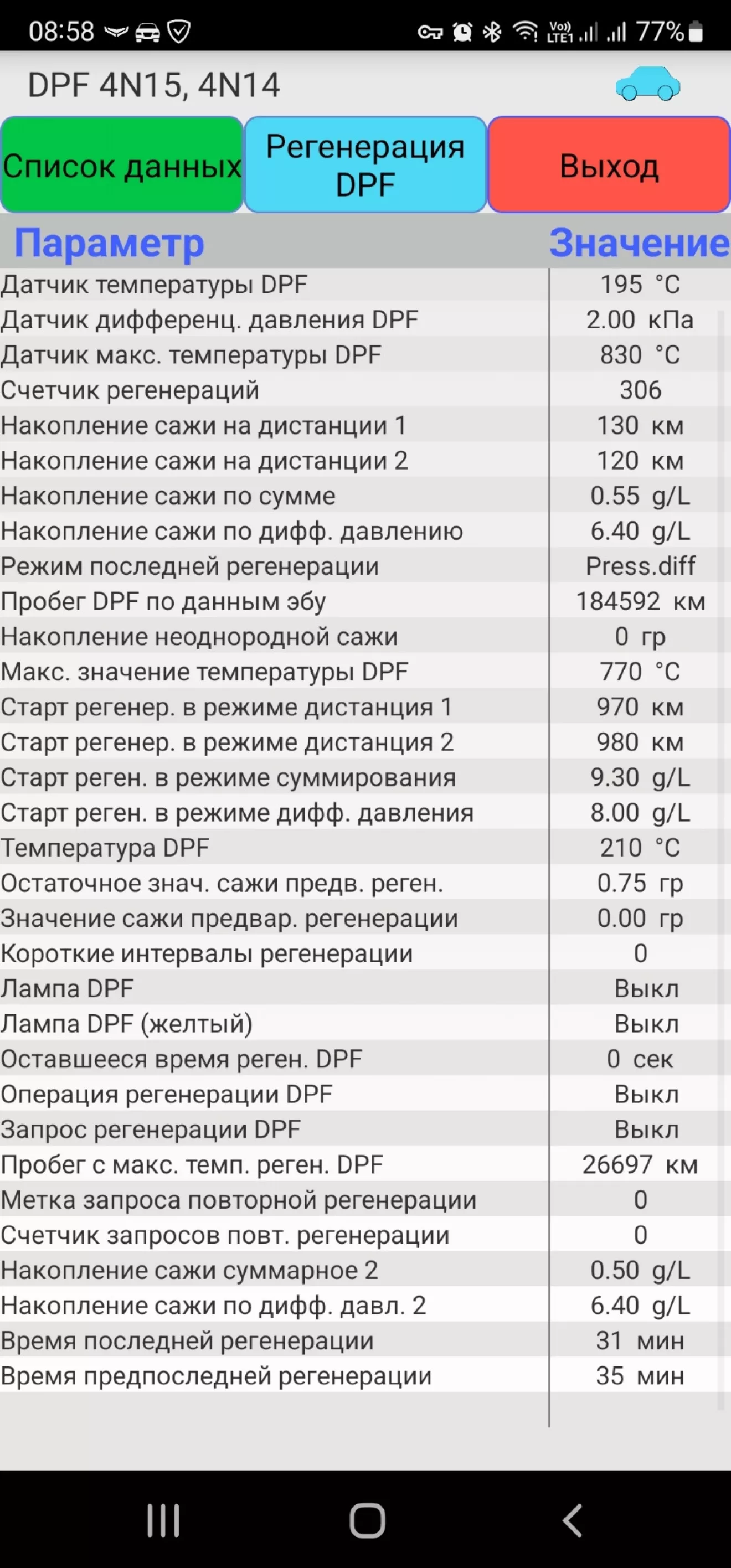 Уровень масла проверяю регулярно, а тут что-то засуетился и долго не заглядывал. Сегодня глянул, уровень на отметке Х, срочно меняю масло. Подскажите можно по данным на скрине понять как давно была регенерация DPF?