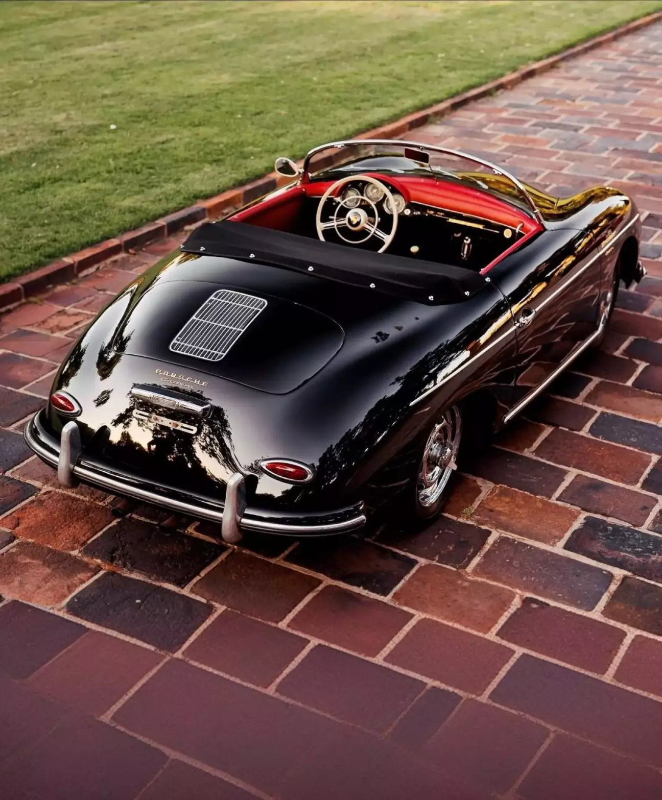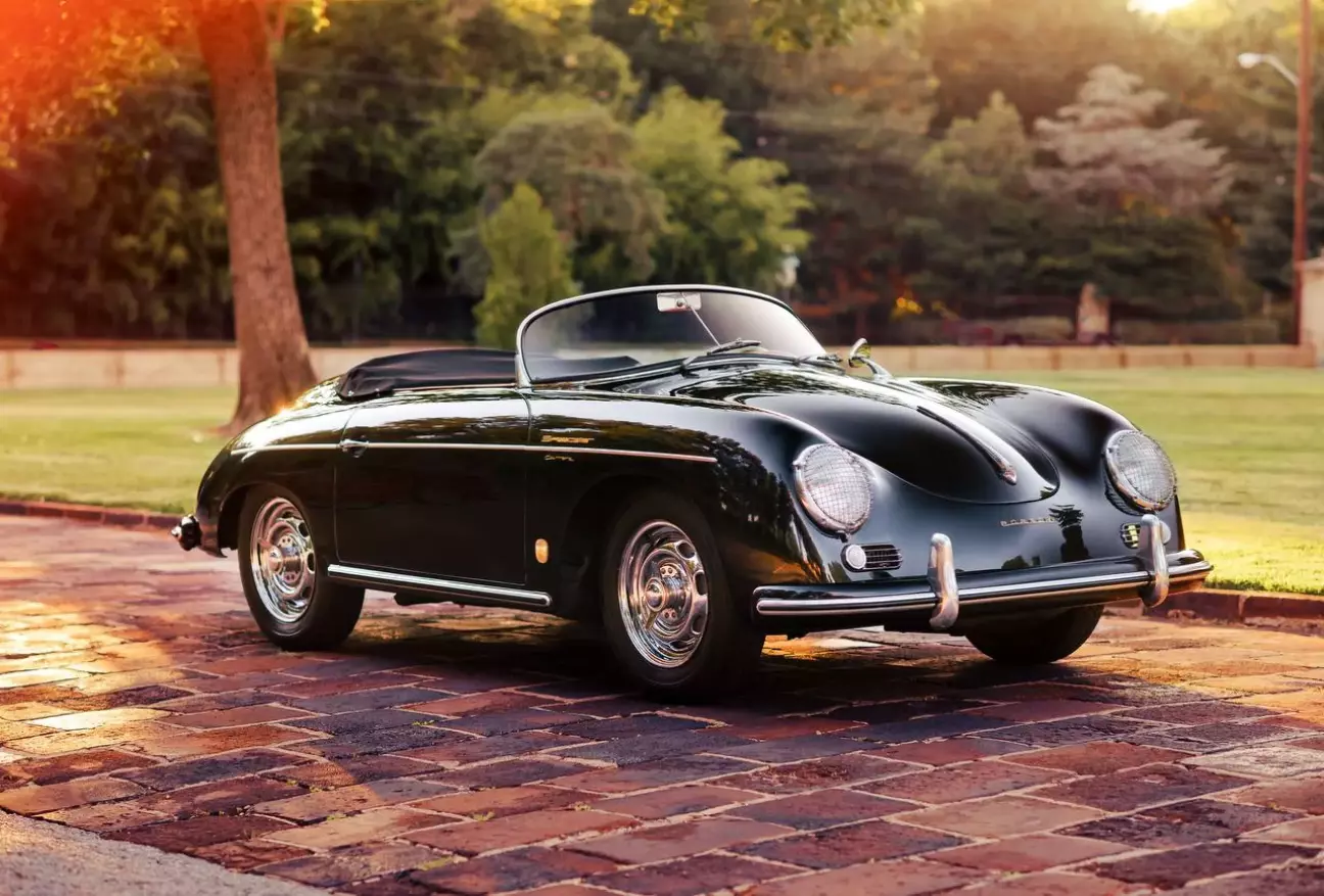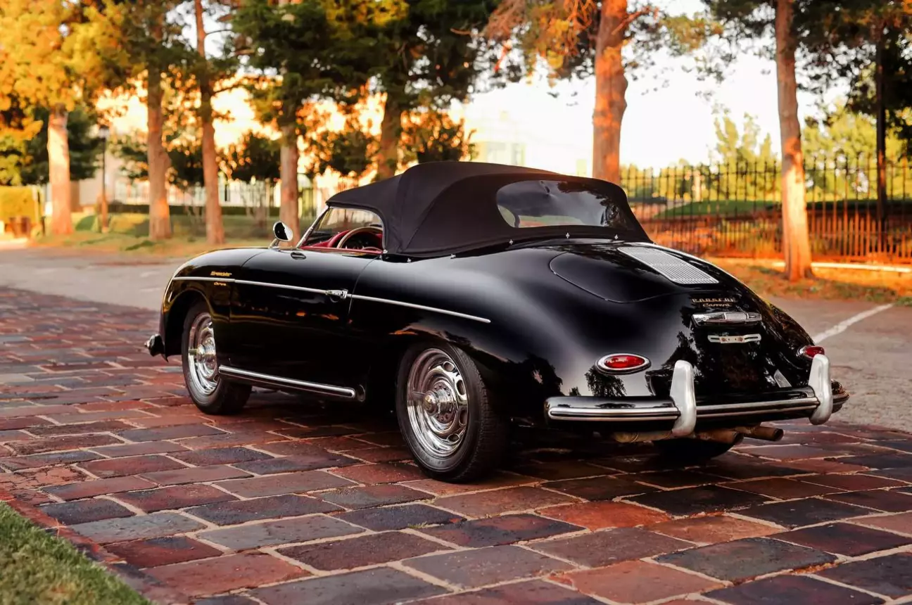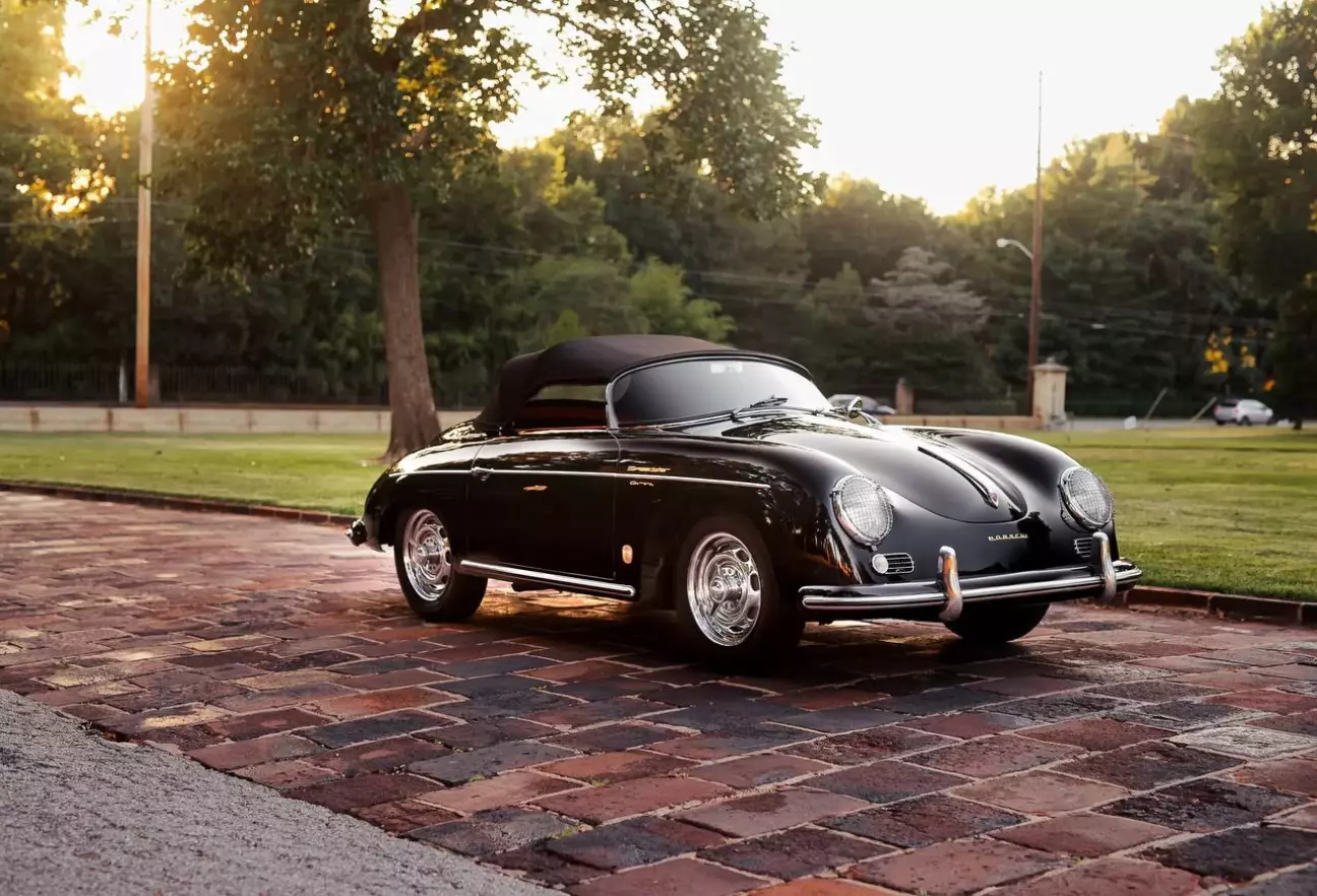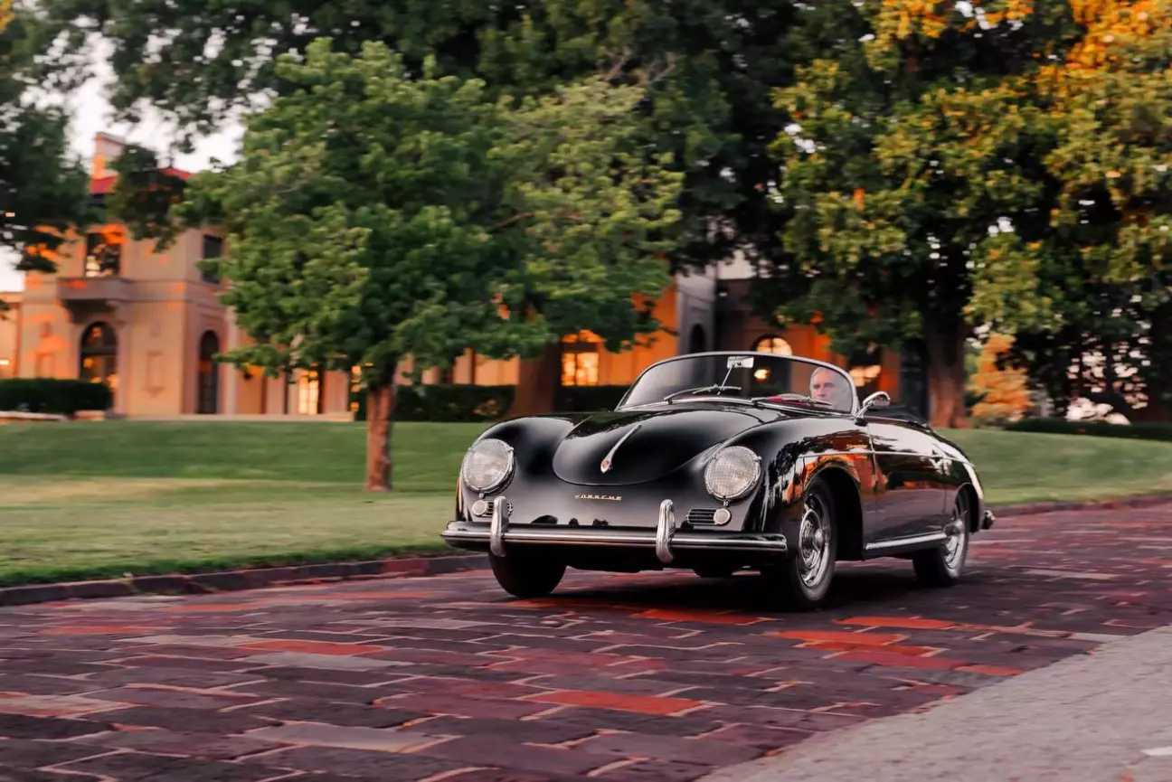 Porsche 356A Carrera GS Speedster 1956 року з кузовом Reutter — легендарний і рідкісний автомобіль, відомий своїм мінімалістичним дизайном і потужним чотирикамерним двигуном Fuhrmann. Усього було виготовлено близько 151 екземпляра Carrera Speedster.