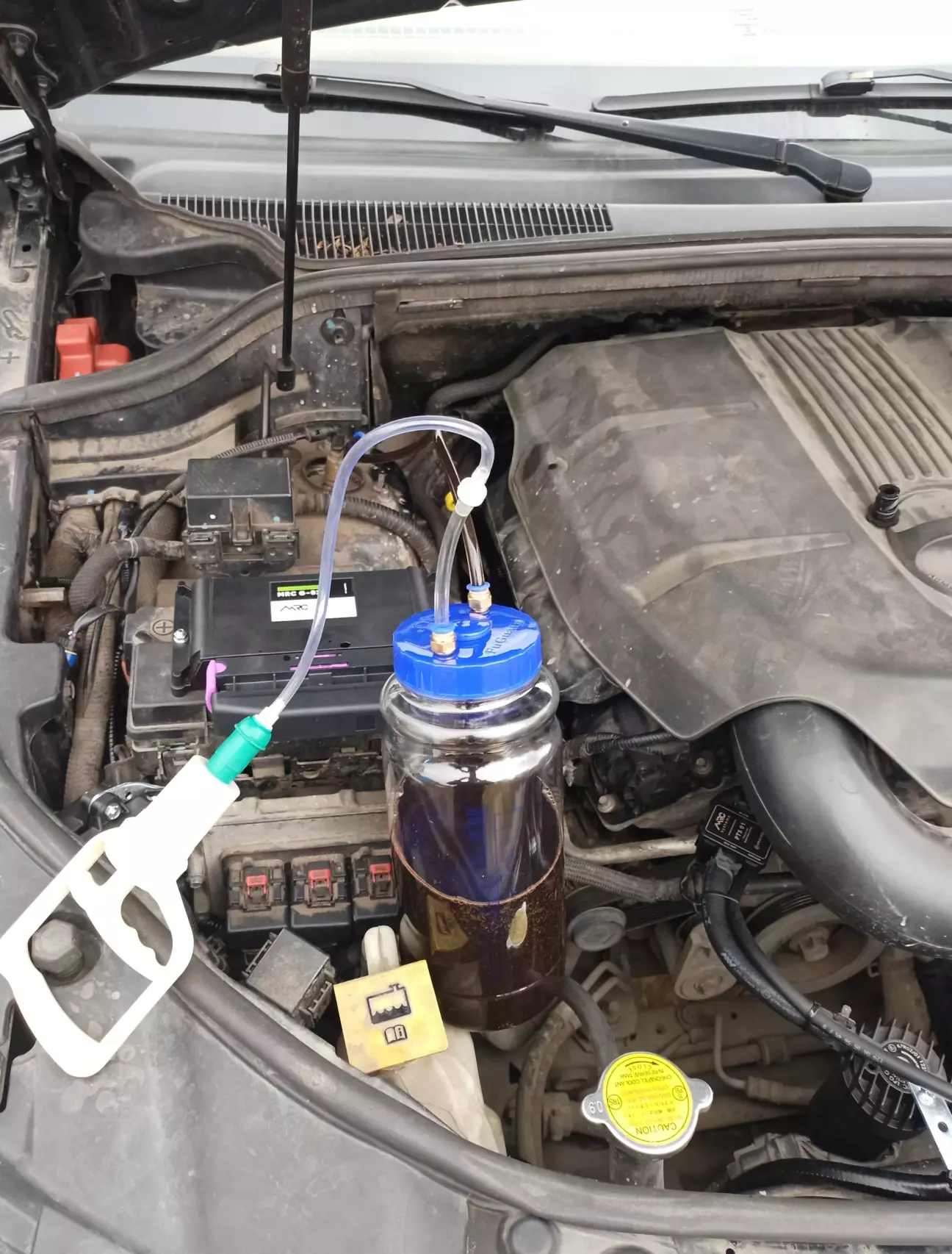 Приблудою з аліекспрес викачую масло з коробки через шахту щупа. Витягруло лише 3.5л, хоча зонд наче мав впертись в піддон.