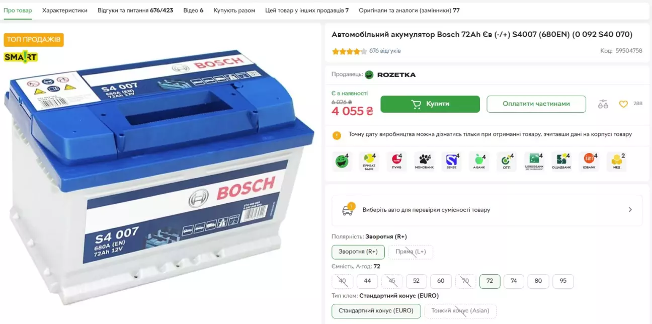 🔋 Довго з вибором не вагався та вирішив не вигадувати велосипед — взяв Bosch на 72Ah. Трошки збільшив ємність.