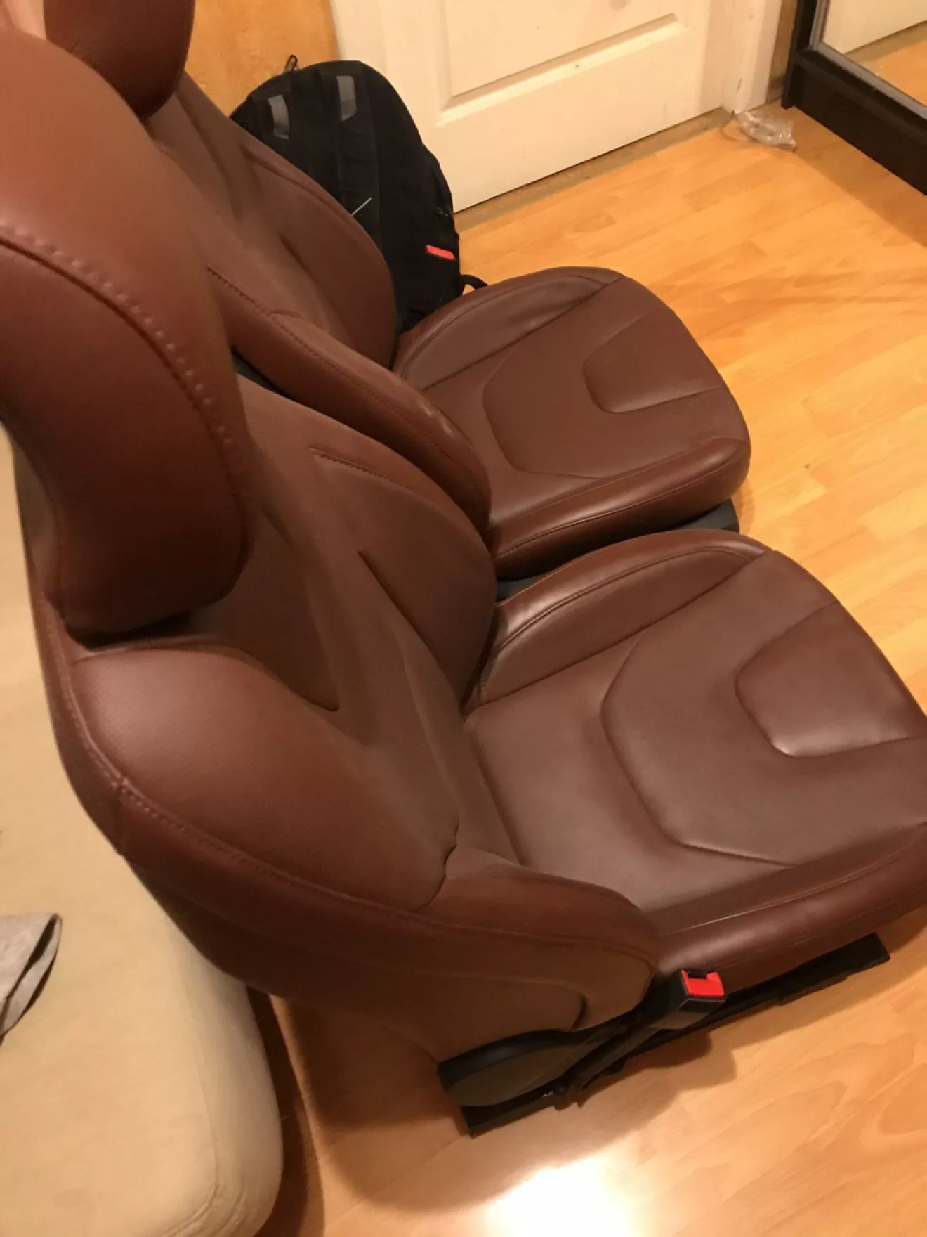 Передние — не хватило моего инструмента и пришлось прибегнуть к помощи товарищей с СТО. Посрывал поехали все болты передних сидушек. На месте ничего не менял ибо весь салон лежит в квартире и по-тихоньку по 1му элементу заменял на протяжении нескольких дней. Вечером перекинул водительское кресло. Утром уже докинул пассажира. А потом еще за 2 дня перекинул по-тихоньку все дверные карты.