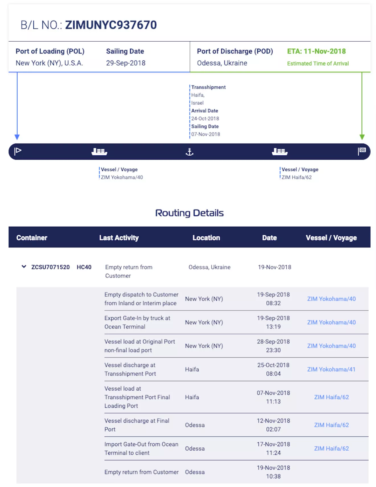 Дальше длинное время ожидания до прибытия в Одессу. В промежутках мониторил где ящик находится в данный момент.