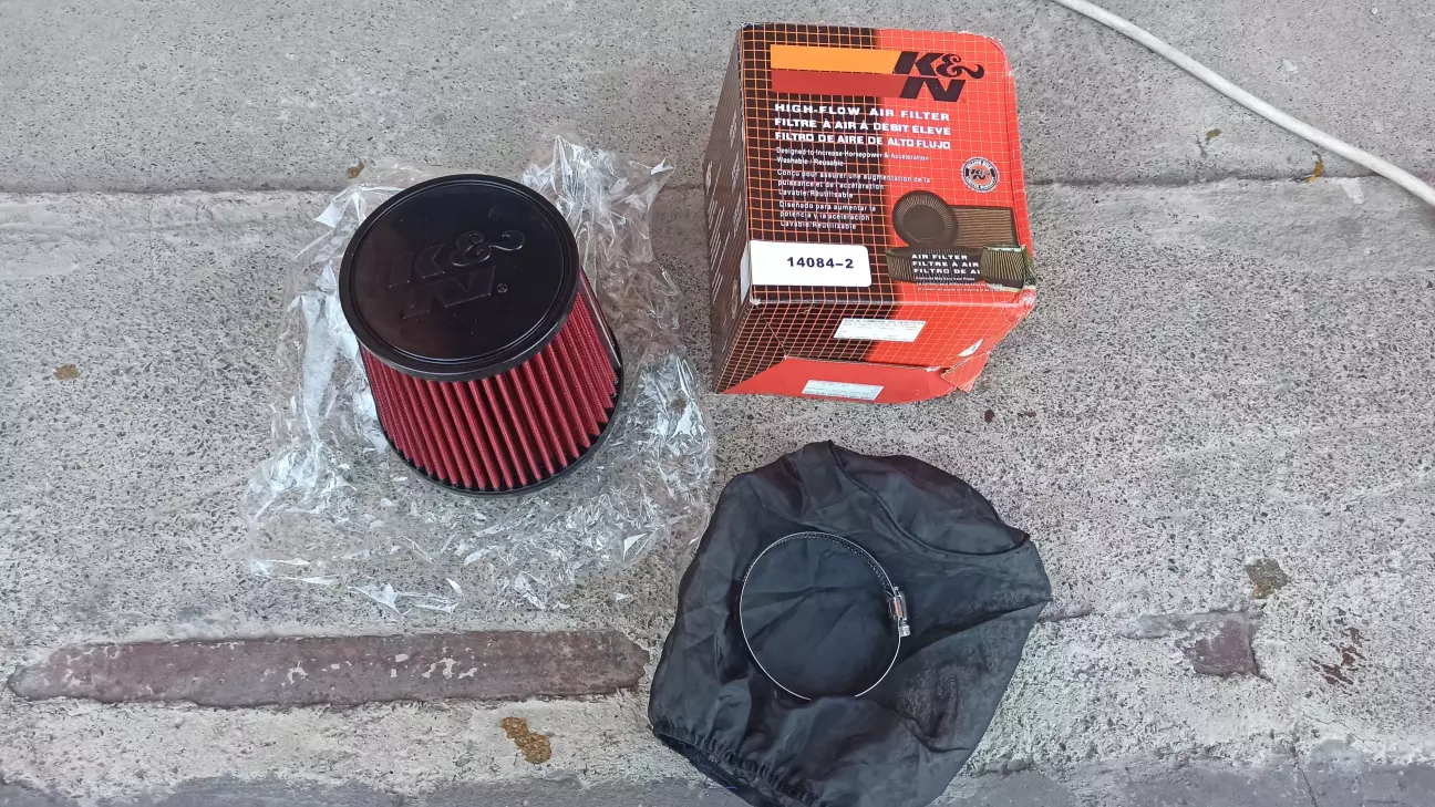 Після капітального ремонту двигуна обкатку проходив на новому фільтрі паперовому від Хонди, да, япошка, але то так треба було... Далі хотілось щось компактне і в той же час візуально симпатичне... Купив у хлопців з JDM_garage фільтр нульового опору K&N... а мій друг Макс підігнав на нього захисний чохол.... Тому у мене був такий комплект...
