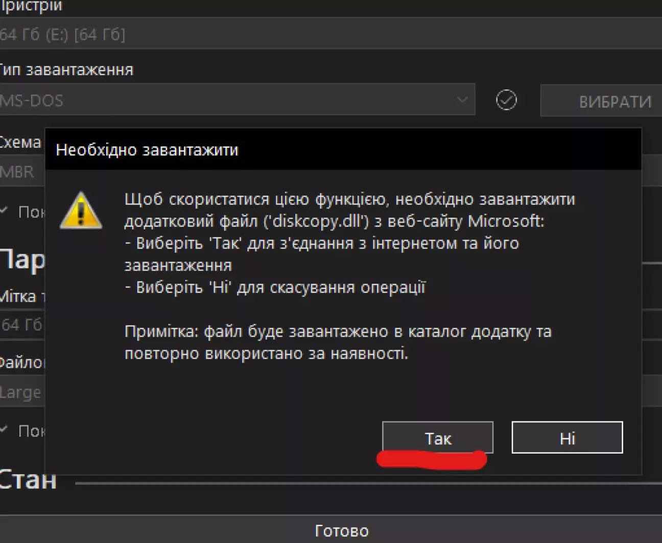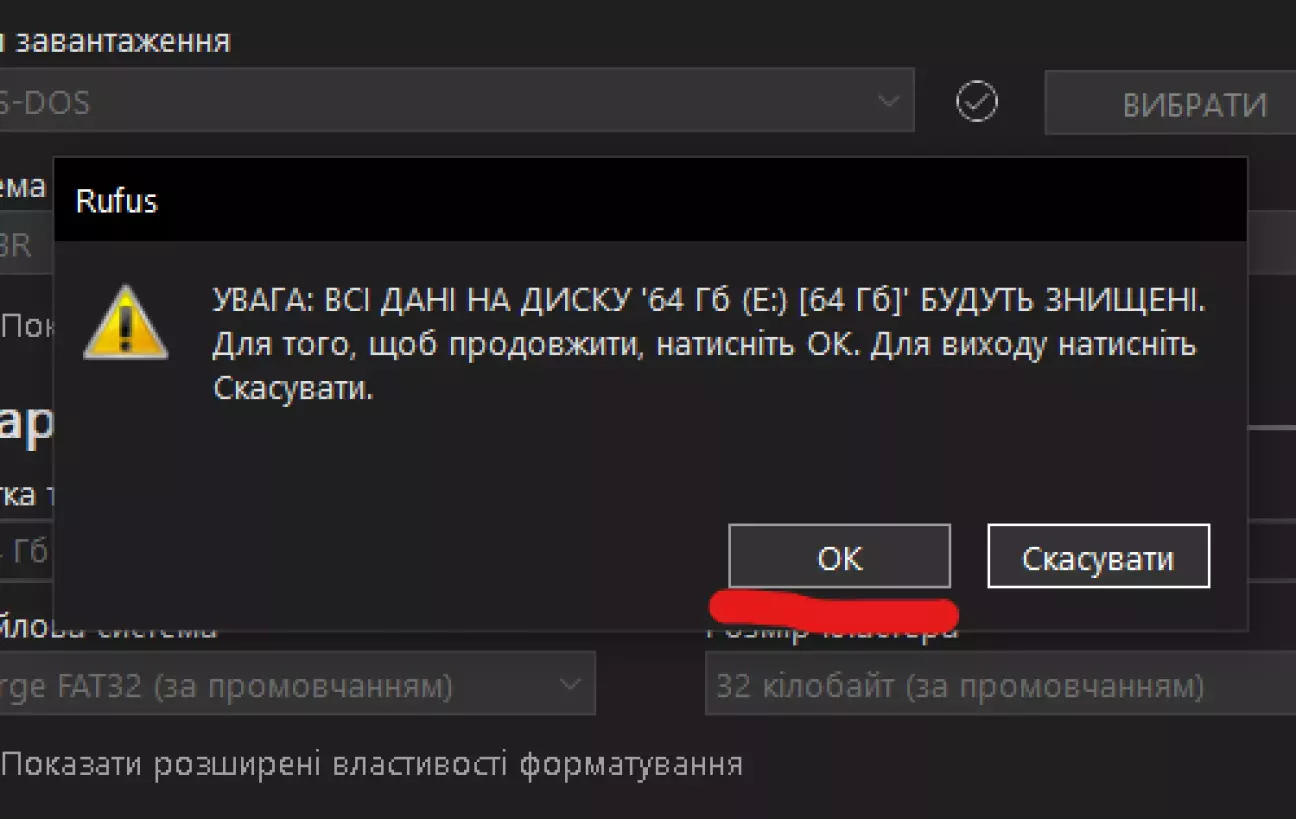 Після скачування - буде таке вікно. Впевнись, що флешка не має на собі важливої інфи та тисни ОК