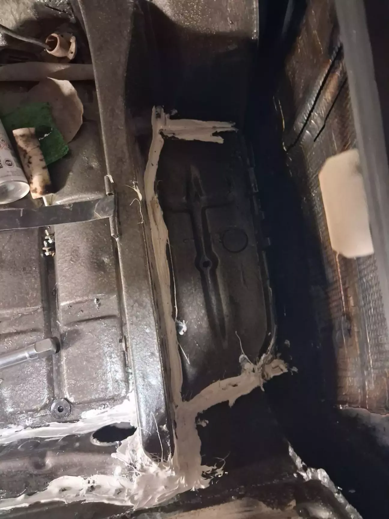 Далі загліфував шов, на скільки можна було вивести - вивів геометрію дверей. Після вирівнювання дверки, на скільки можливо, зняв з дверки фарбу до металу і почав шпаклювати місце зварювання. Глибокі впадини шпаклював алюмінієвою шпаклівкою, середні - універсальною. по закінченню пройшовся фінішною.