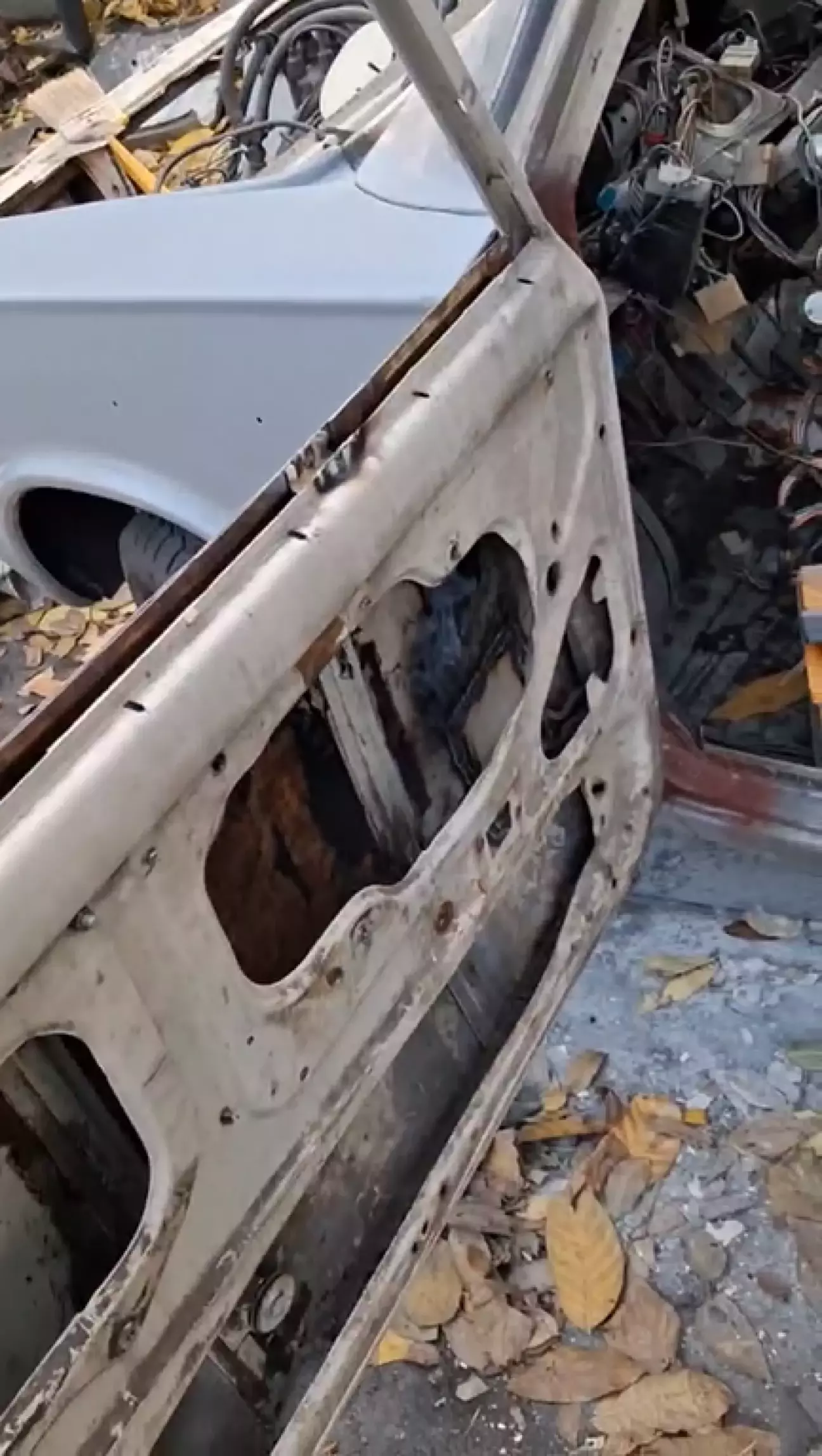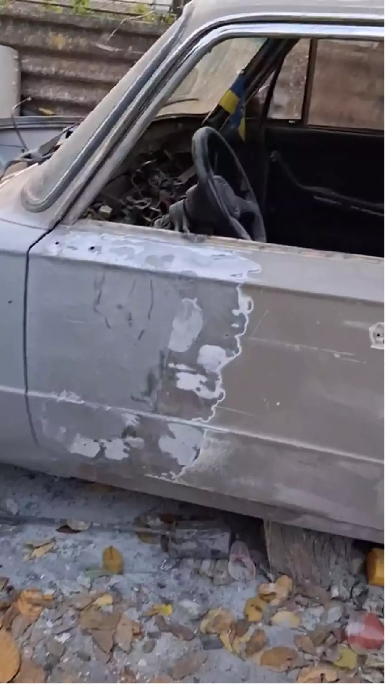 Далі пішло діло за шпакльою, шпаклювати було шо. На передній двері була шпаклівка давно, але на ній вже були тріщини. Під ними ржавчина, а де ржавчина - там дірки. Зняв шпаклівку кораловим диском. Під шпаклівкою була вже дірка. Шпаклівку було нанесено на стару фарбую. вирізав дірку, вирізав латку і заварив.