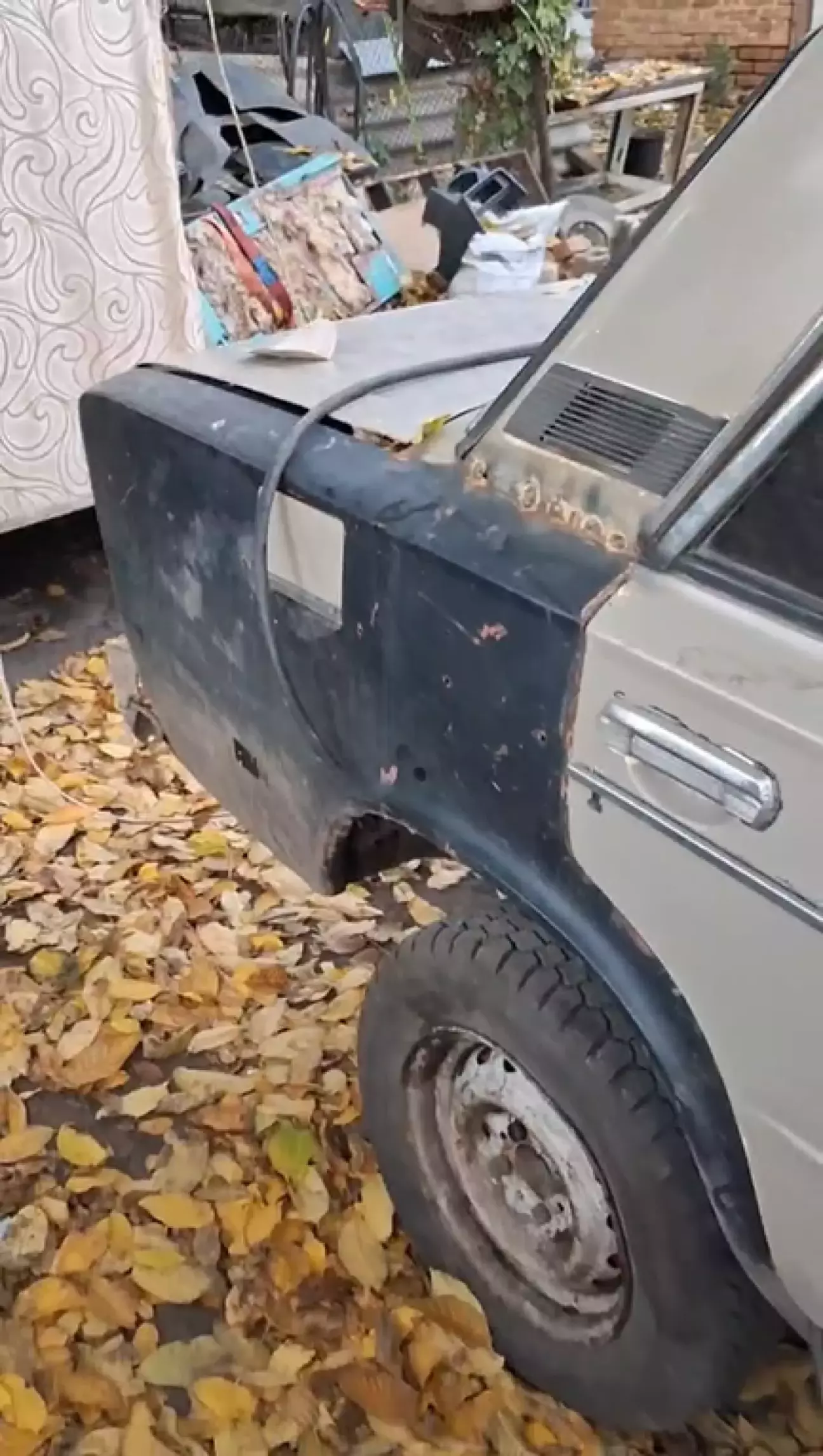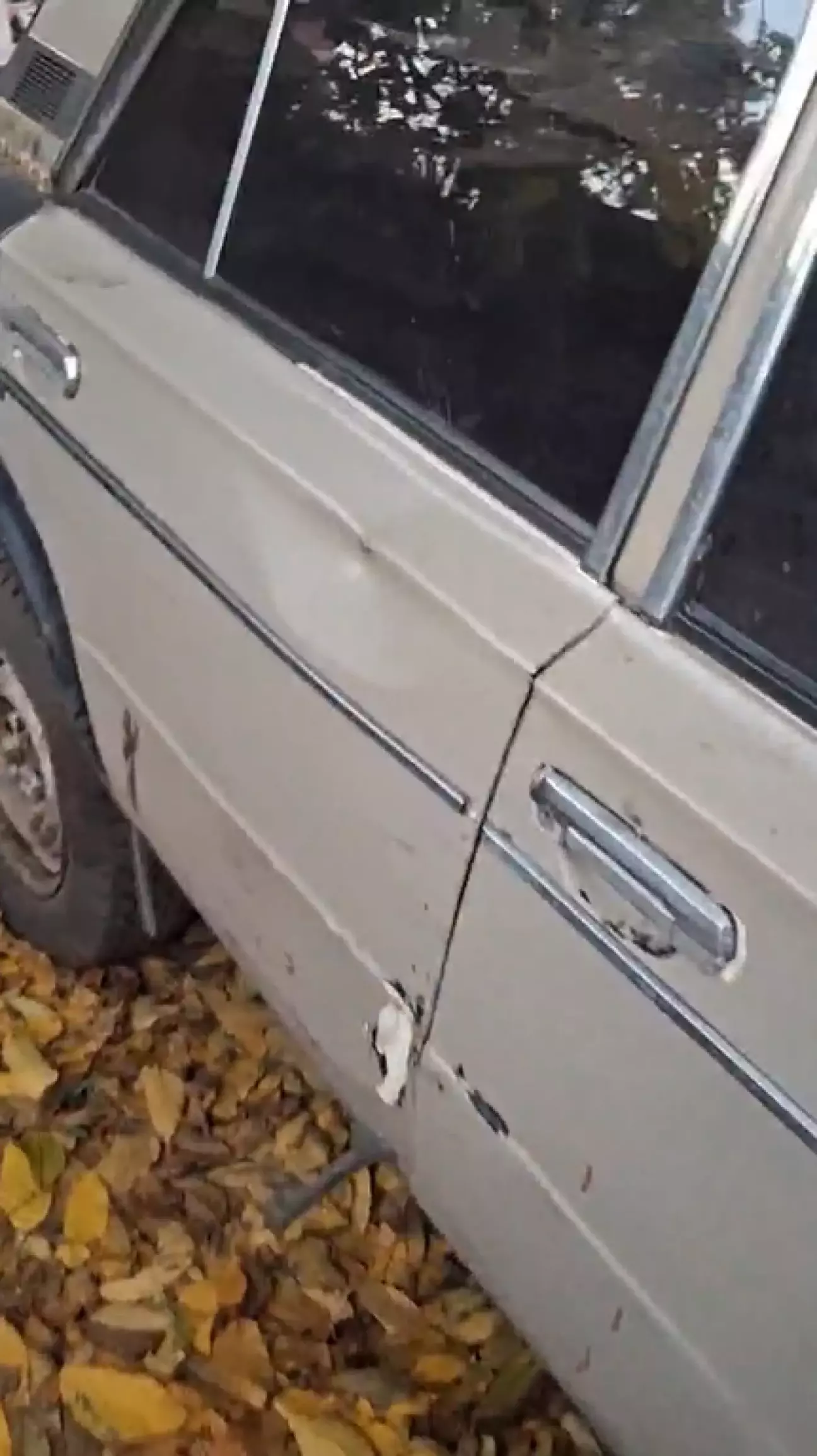 Також на задній правій дверці з'явилася вм'ятина, через те, що колесо, яке тримало авто, коли я його варив, спустило і пром'яло обшивку.