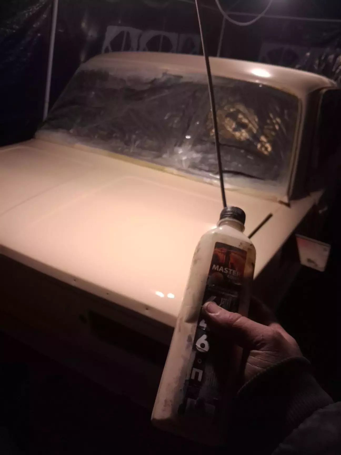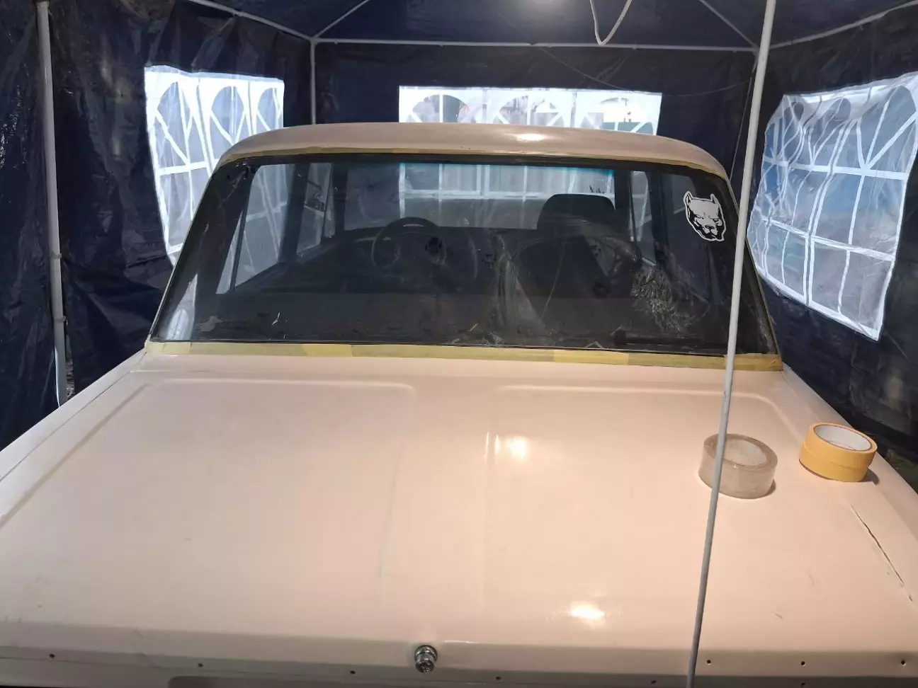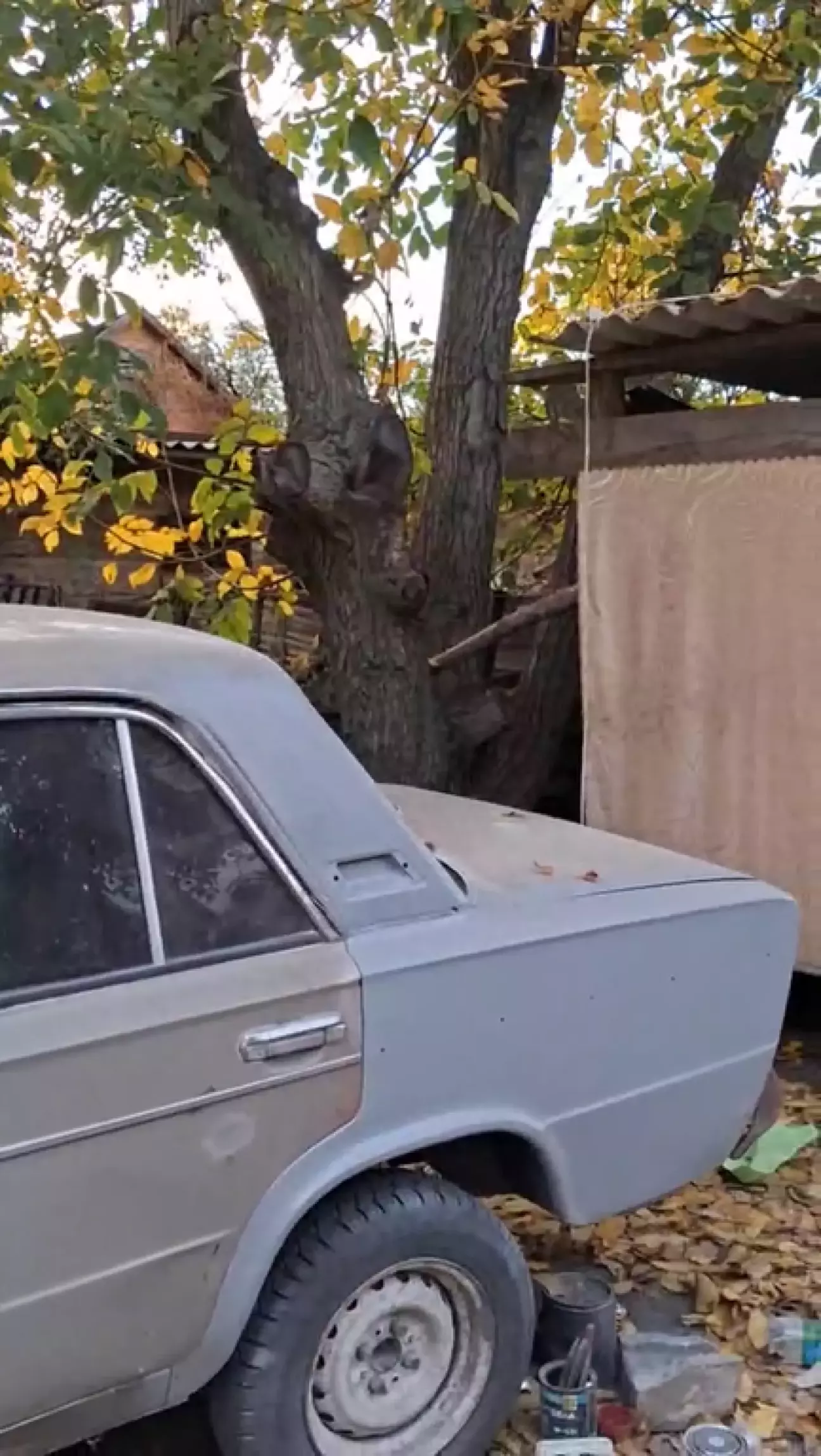 Щоб вберегти авто від дощу - зробив просте накриття. пилу не було, так як вже пізня осінь і в основному дощі. але фарба сохне відносно швидко. між шарами фарби час підсихання 3 години.