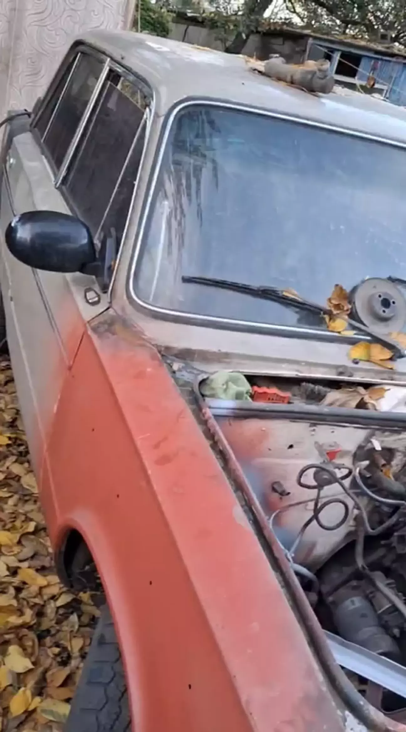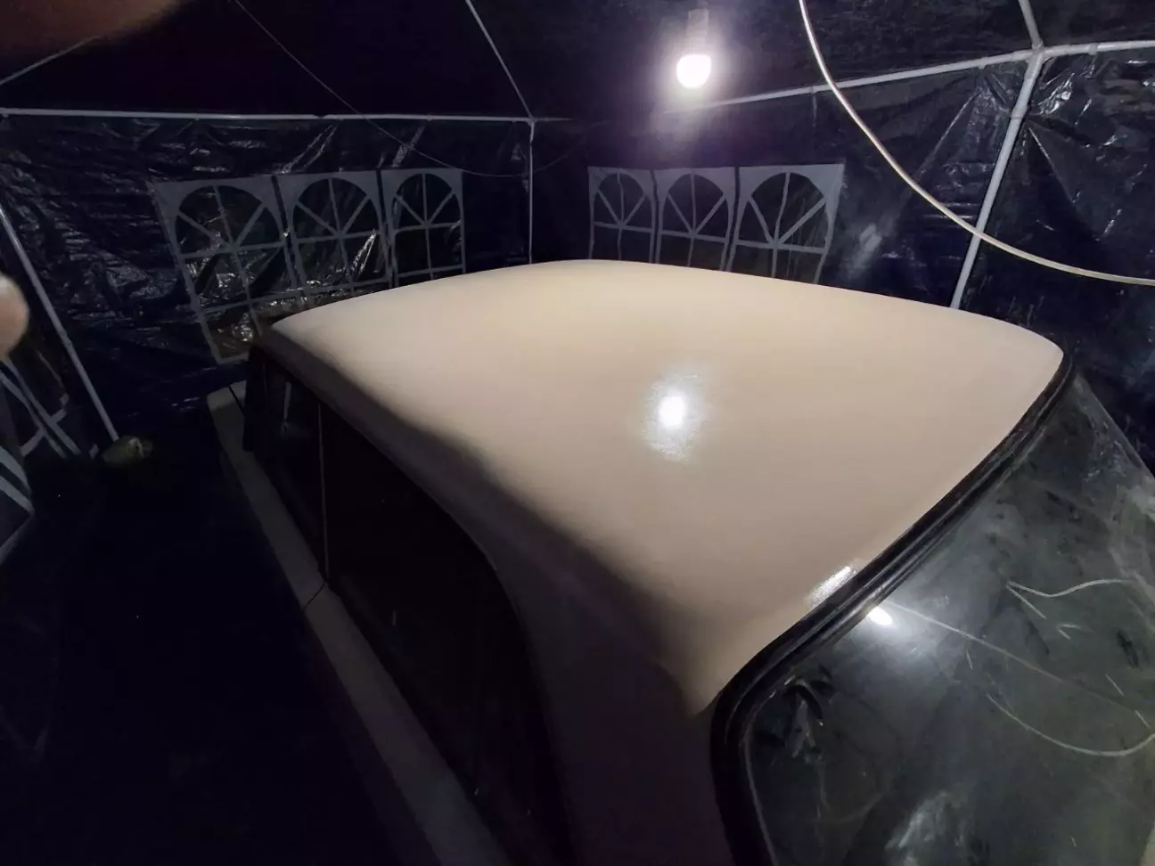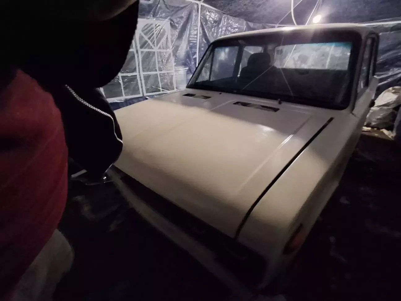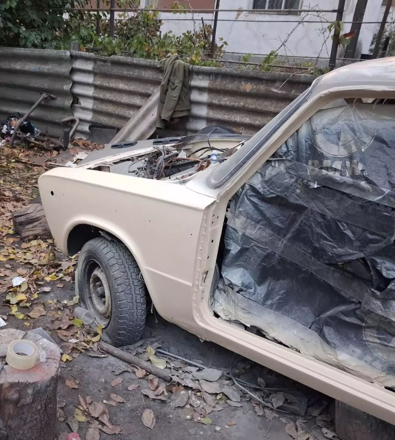 Щоб вберегти авто від дощу - зробив просте накриття. пилу не було, так як вже пізня осінь і в основному дощі. але фарба сохне відносно швидко. між шарами фарби час підсихання 3 години.