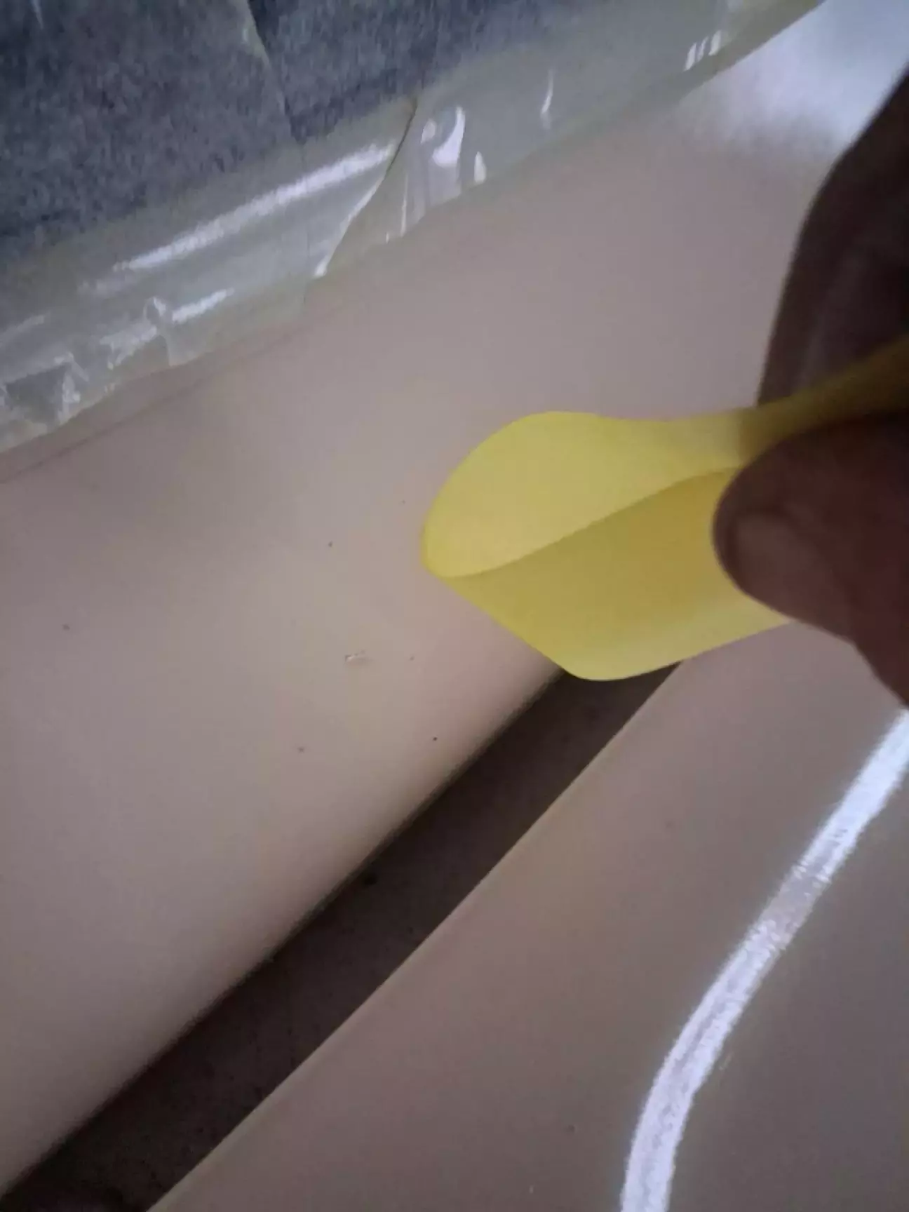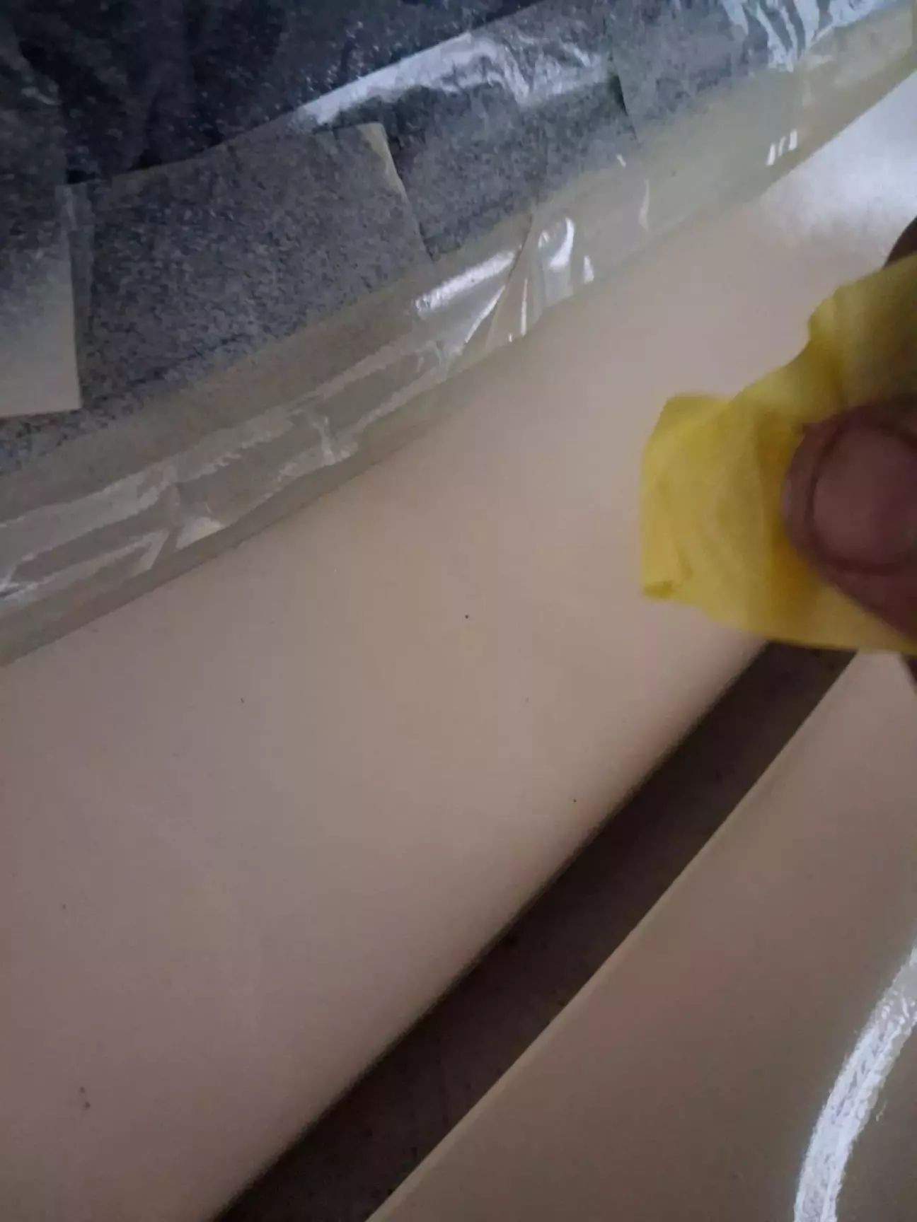 Після шліфування миємо ще раз, даємо висохнути, протираємо знежирювачем тряпкою без ворсу, продуваємо компресором і фарбуємо ще в 3 шари (якщо є лишня фарба, то чого б і ні). Попередньо обклеївши все, що не треба фарбувати.